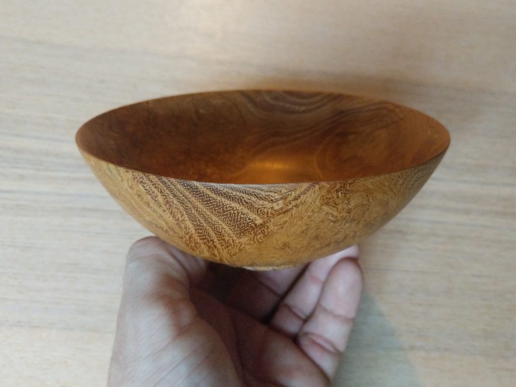 Diese kleine Schüssel habe ich aus einem Stück Maserbuche gefertigt.