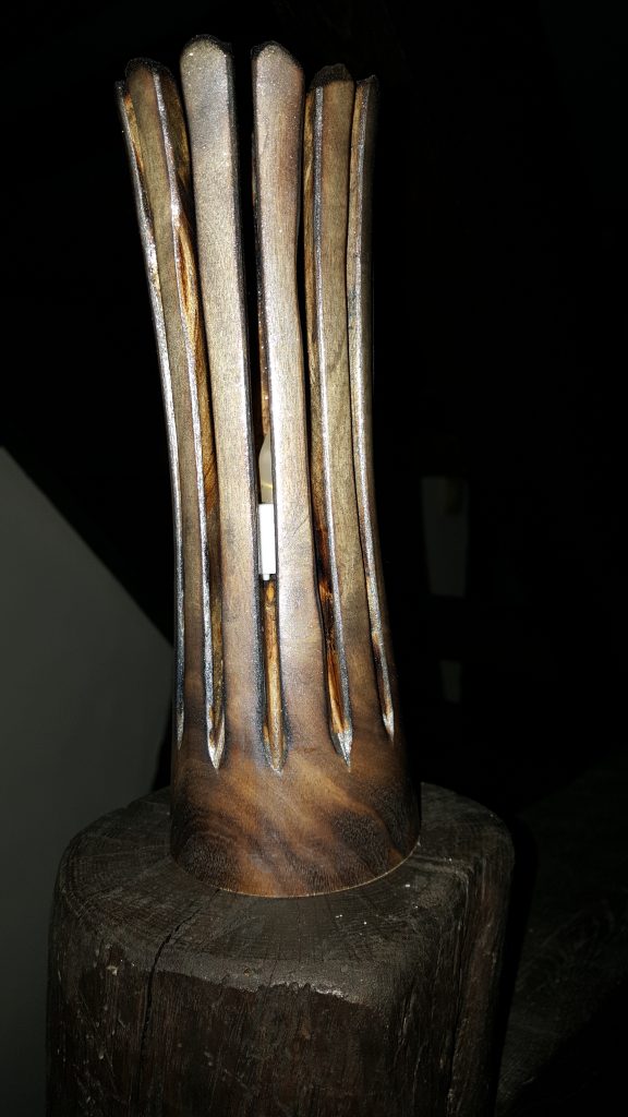 Pfeffermühle aus gestockter Buche, 27 x 6,5 cm 2x mit Tungöl von DICTUM eingelassen.