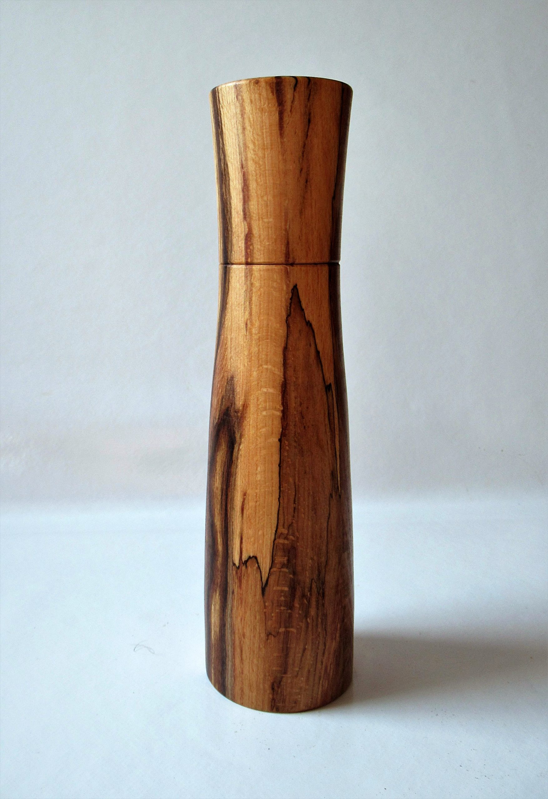 Pfeffermühle aus gestockter Buche, 27 x 6,5 cm 2x mit Tungöl von DICTUM eingelassen.