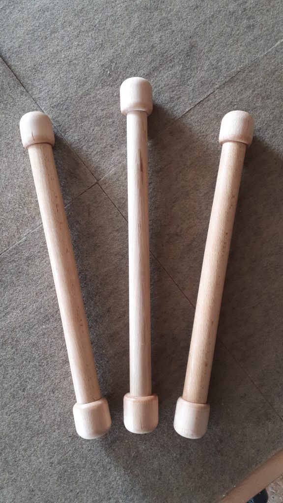 Gedrechselte Zangenschlüssel aus Buchenholz. Die Endkappen werden nach der Montage and der Zange aufgeleimt. Oberflächenbehandlung mit Hartwachsöl.