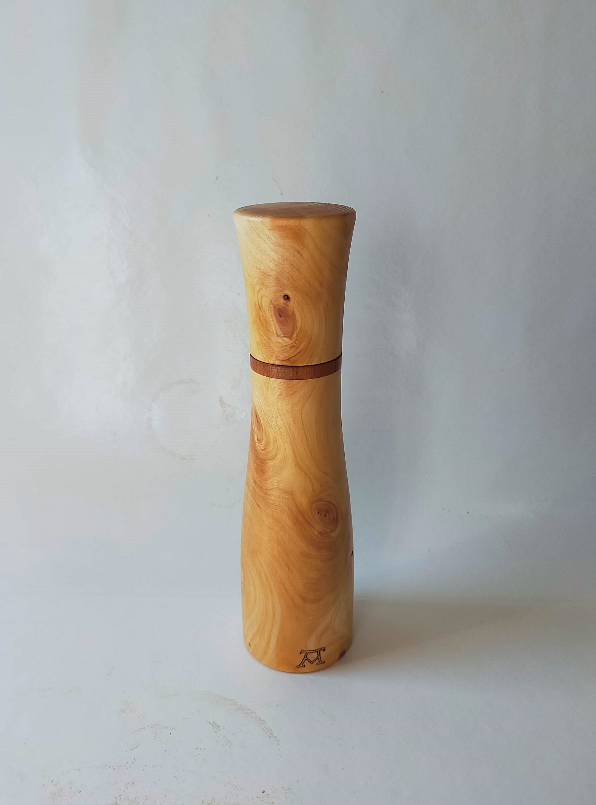 Pfeffermühle aus Thuja mit Ring aus Pflaume 25 x 6,5 cm , Oberfläche 2 x mit Tungöl von DICTUM eingelassen