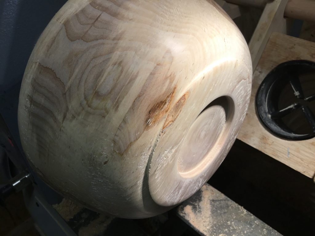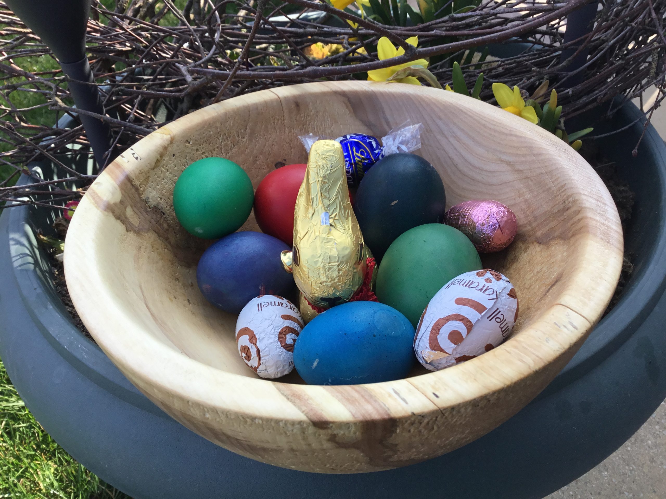 Da ich neulich ein großes 7cm starkes Brett frisch geschnittenen Eichenholzes geschenkt gekriegt habe, habe ich für die Osternester dieses Jahr einige Schalen gedrechselt. Da das Holz noch sehr nass war, wurden die Schüsseln direkt ganz dünn ausgedrechselt, sodass sie sich beim Trocknen verziehen konnten ohne zu reißen. Dabei wurde der Trocknungszustand anhand des Gewichtsverlusts beobachtet und sobald sich das Gewicht nicht mehr veränderte der Fuß entfernt und der Boden für einen sicheren Stand plan gedrechselt.