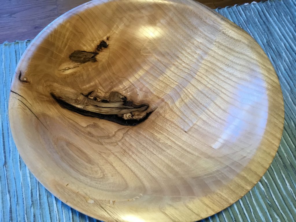 Ein Bekannter brachte mir einen Holzklotz. Er meinte es wäre zum Einheizen zu schade. Ich denke es war Birne. Die Schale hat einen Durchmesser von 25 cm, Höhe 6 cm. Die Oberfläche wurde abschließend mit Danish Oil von DICTUM behandelt.