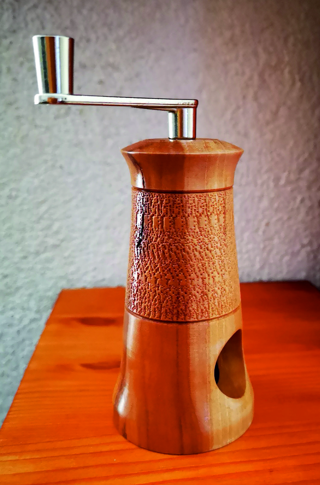 Muskatmühle strukturiert 9. März 2021Drechselarbeiten, Neue BeiträgeRalf GeithnerGedrechselte Muskatmühle, Apfel, strukturiert, Höhe 13 cm, Durchmesser 5 cm mit handelsüblichen Mahlwerk für Muskatnüsse.teilen teilen merken