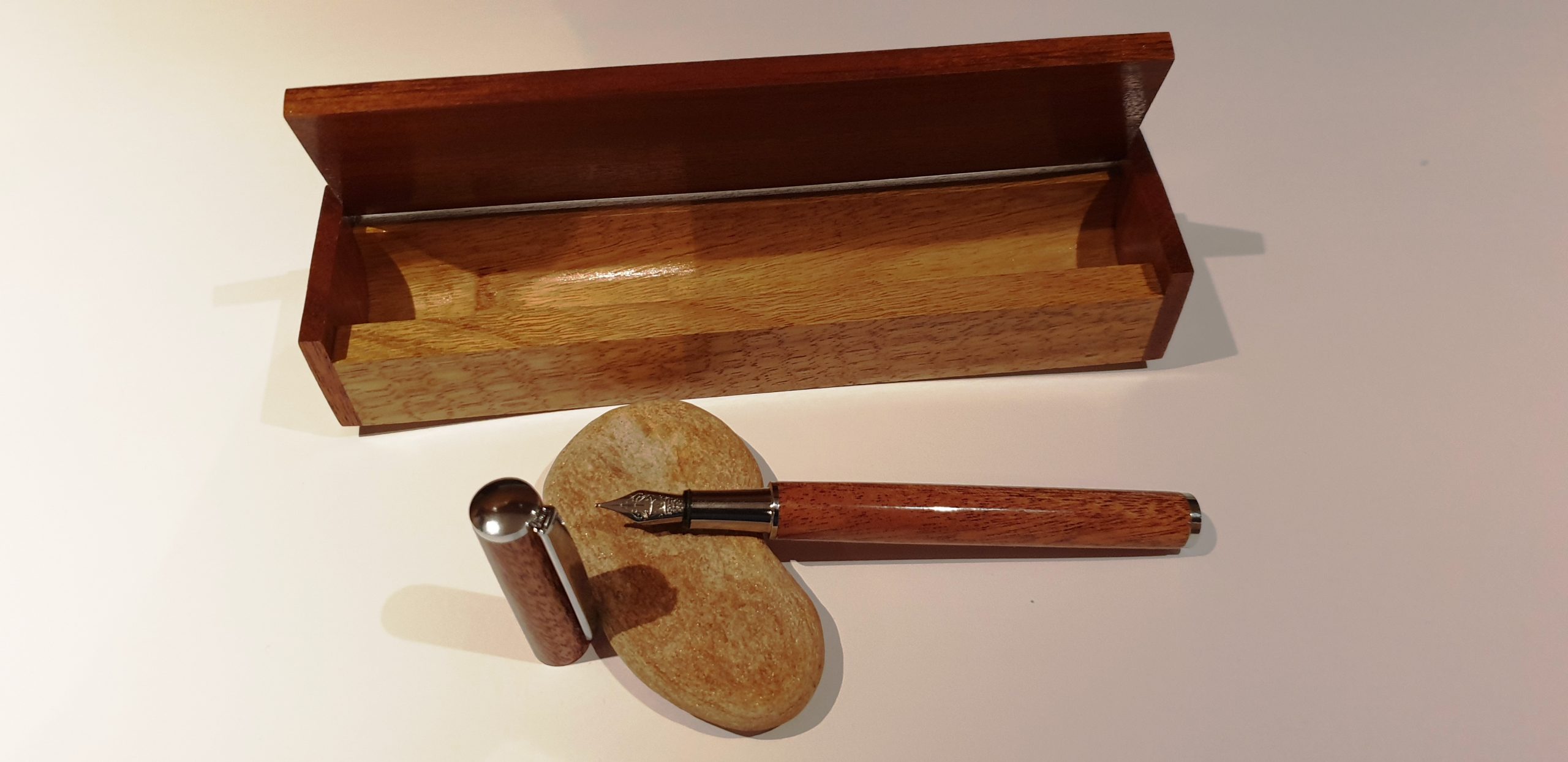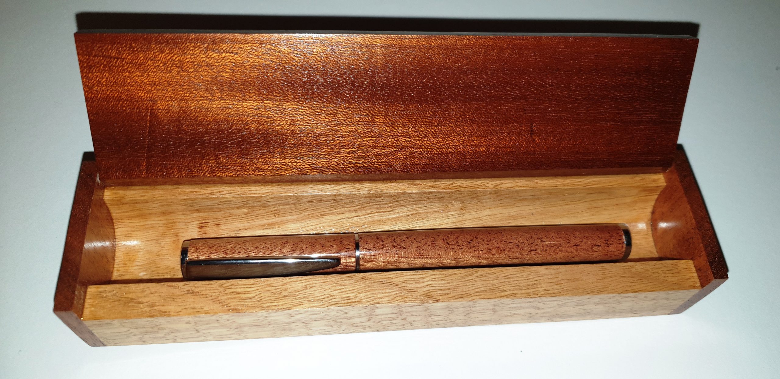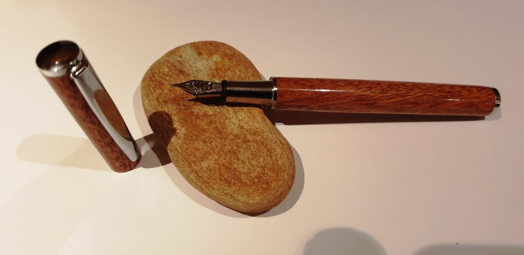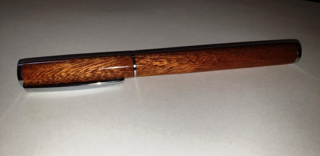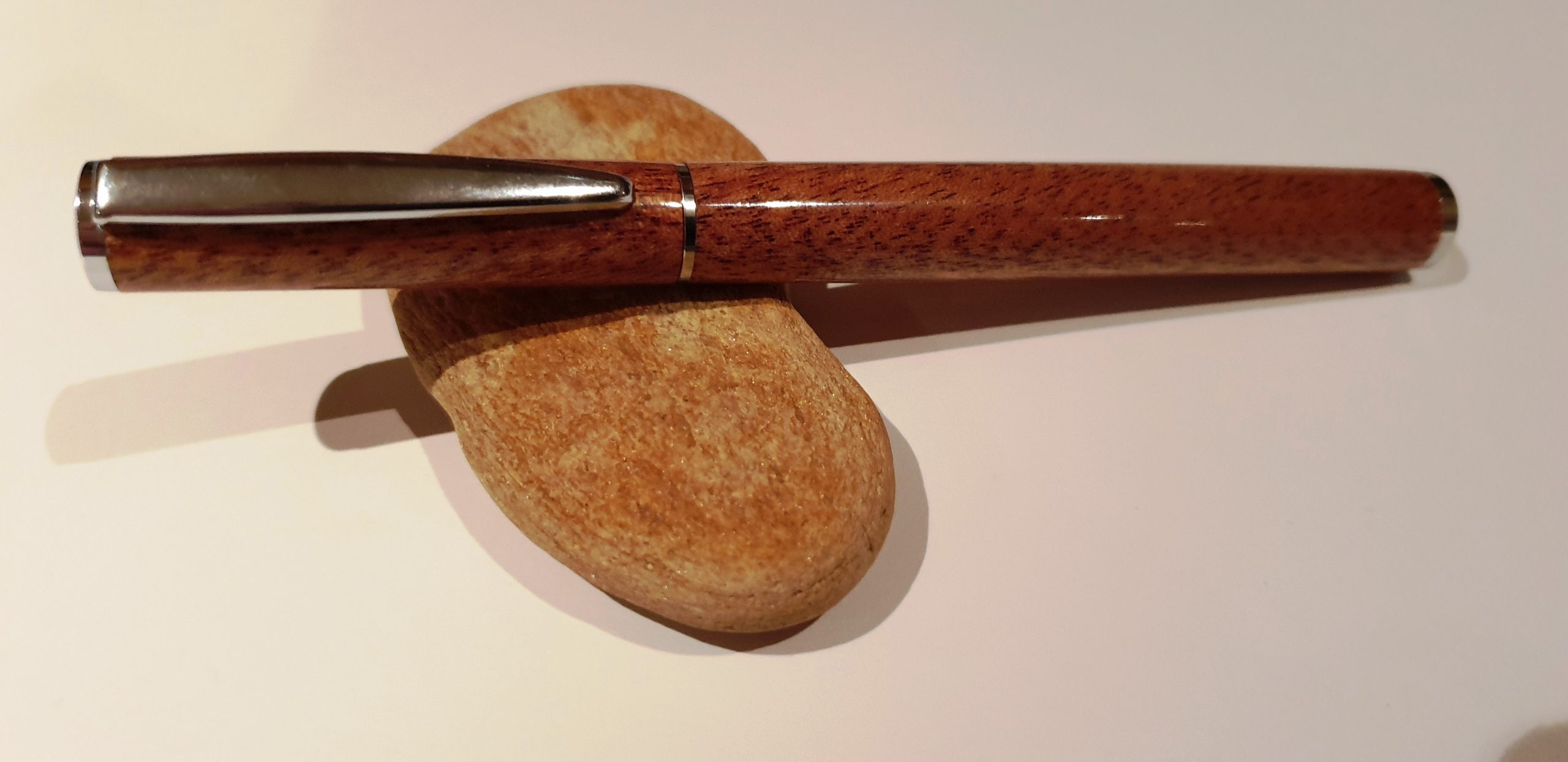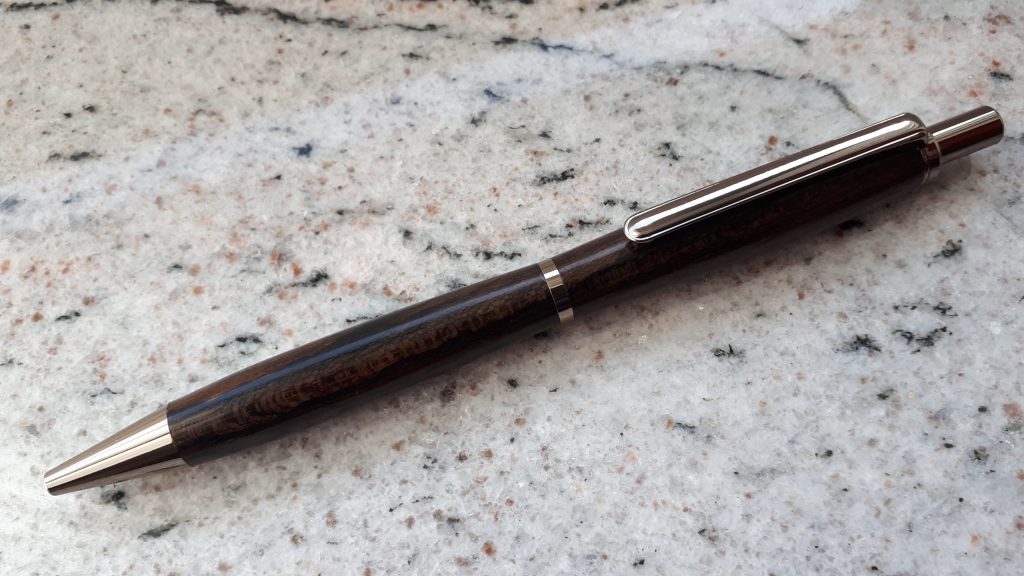 Kugelschreiber mit Klickmechanik in silber aus Ziricoteholz gedrechselt.