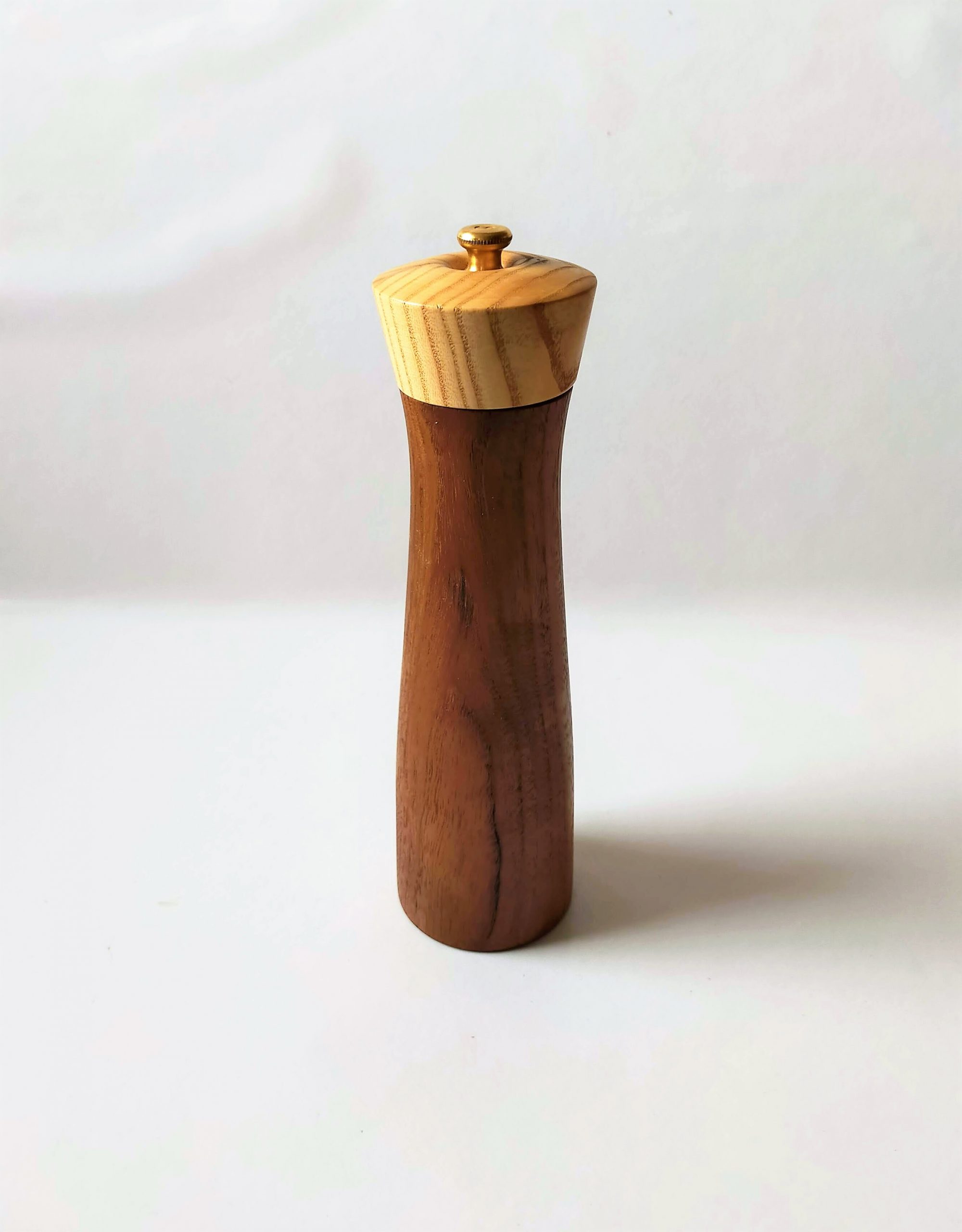 Pfeffermühle aus Teak und Esche, Mahlwerk und Oberfläche von DICTUM: Maße: 23×6,5cm