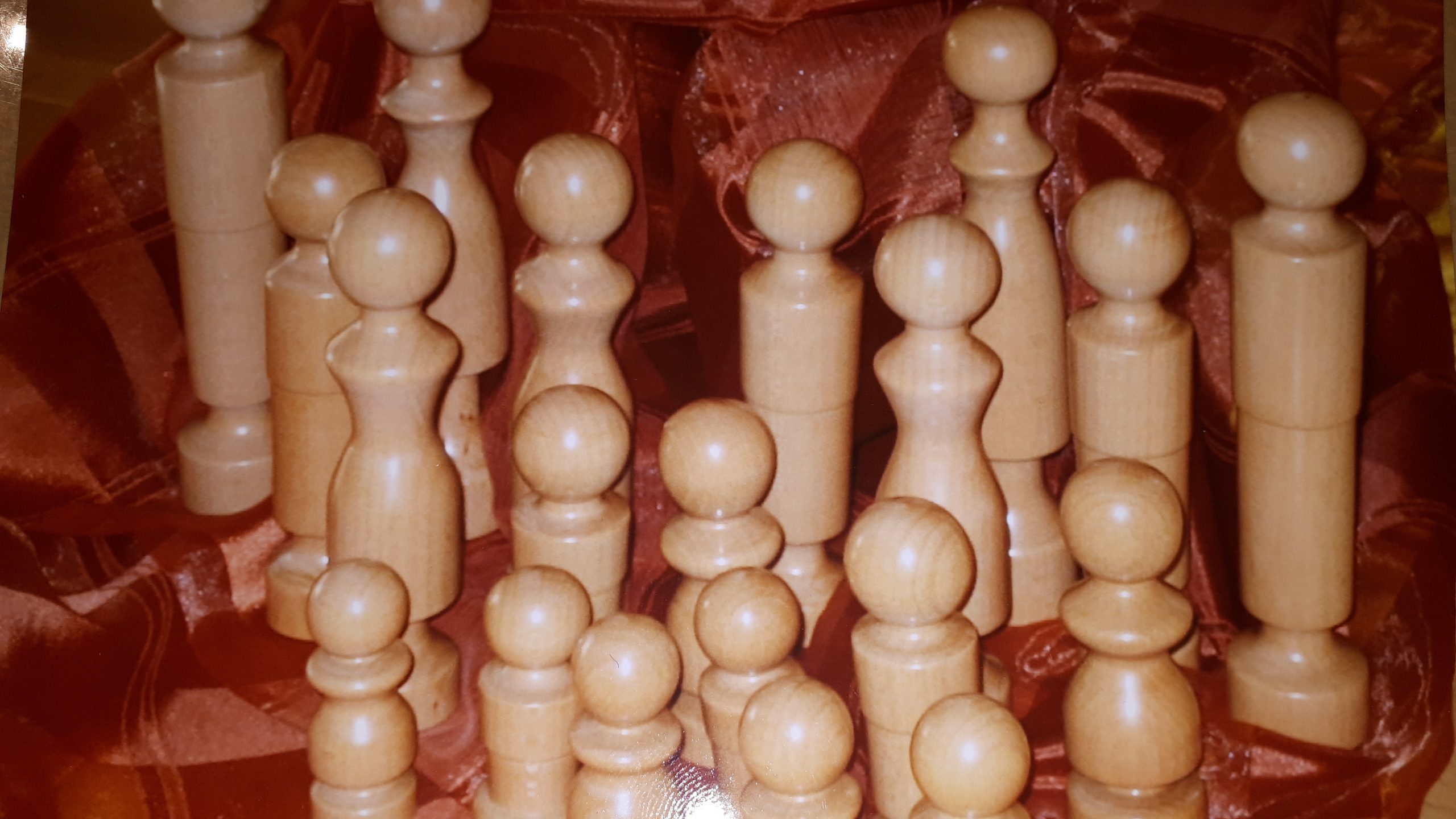 Diese Therapiefiguren werden für Familienaufstellungen in der Psychotherapie mit Kindern eingesetzt. Sie worden aus Buchenholz gedrechselt, und mit Danish Oil endbehandelt.
