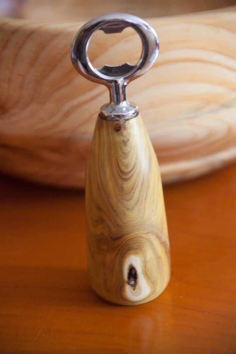 Der Flaschenöffner wurde aus dem Ast eines Obstbaumes gedrechselt. Die Oberfläche wurde bis Körnung 400 geschliffen und anschließend mit Danish Oil von DICTUM behandelt.
