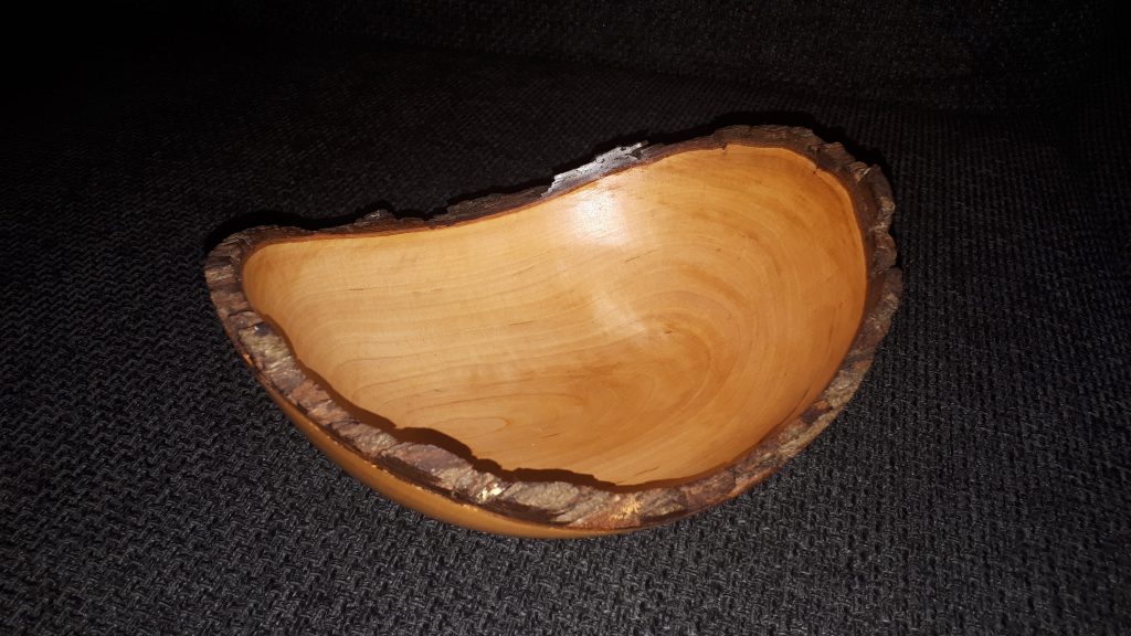 Naturrandschale mit Rinde aus Apfelbaum. Höhe 10 cm, Länge 23cm, Breite 18cm. Oberflächenbehandlung mit Danish Oil.