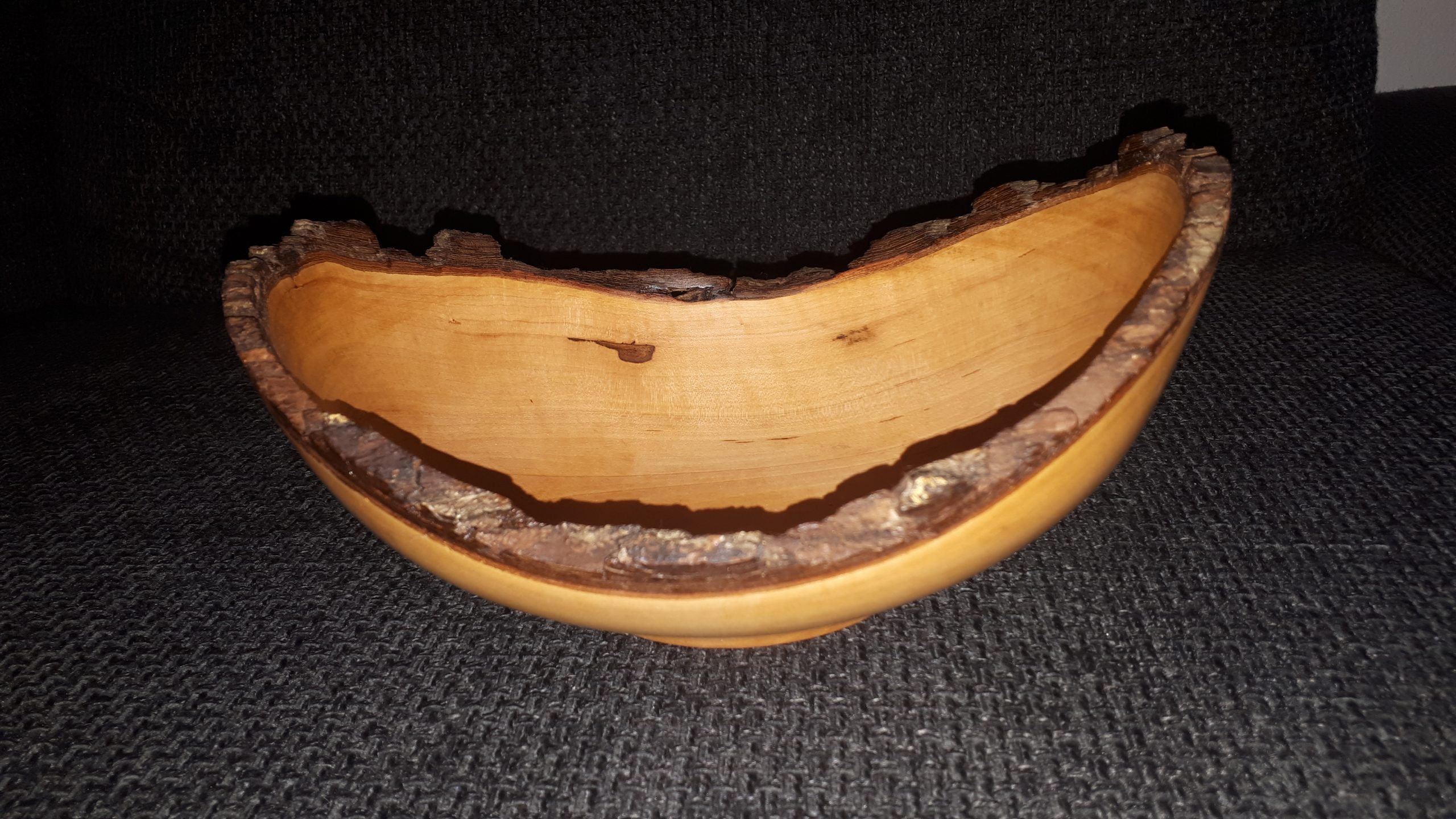 Naturrandschale mit Rinde aus Apfelbaum. Höhe 10 cm, Länge 23cm, Breite 18cm. Oberflächenbehandlung mit Danish Oil.