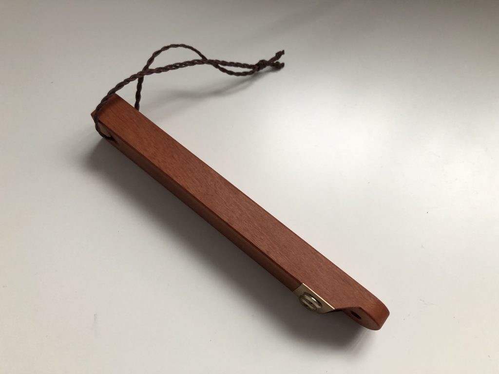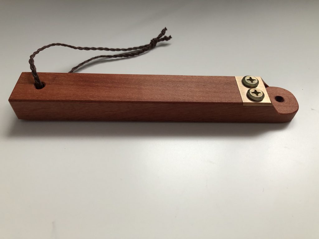 Der Flaschenöffner wurde aus einem Reststück Afri Kulu hergestellt. Als Öffnungsmechanismus wurde eine Messinglasche aufgeklebt und verschraubt. Die Sägearbeiten erfolgten mit dem Festool CMS-TS 55 R-Set, gehobelt wurde mit dem Dictum Hobelset. Abschließend wurde die Oberfläche mehrfach mit Leinölfirnis behandelt.