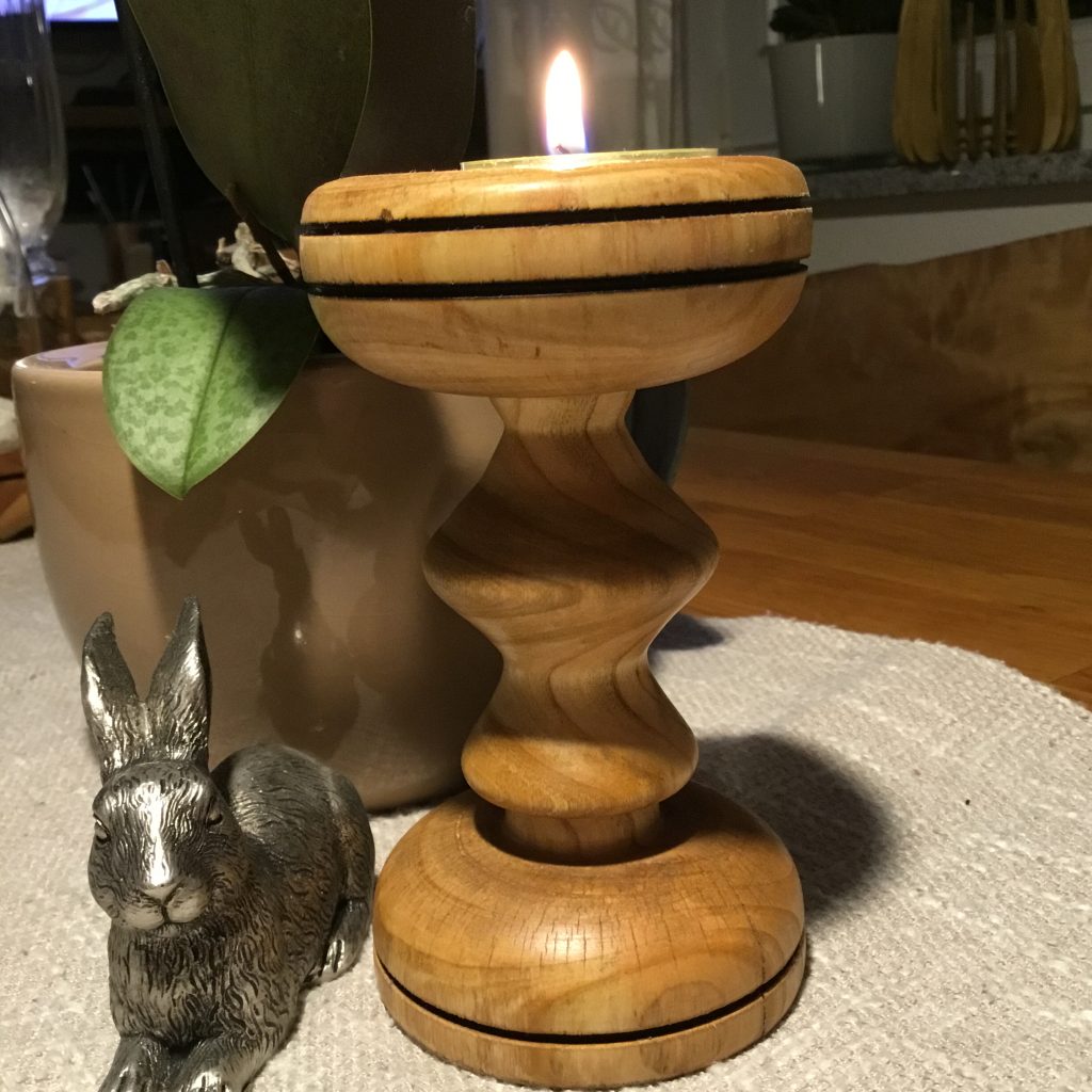 Der Teelichthalter wurde aus dem Ast eines Kirschbaum gedrechselt. Die Oberfläche wurde abschließend mit Danish Oil von DICTUM behandelt.
