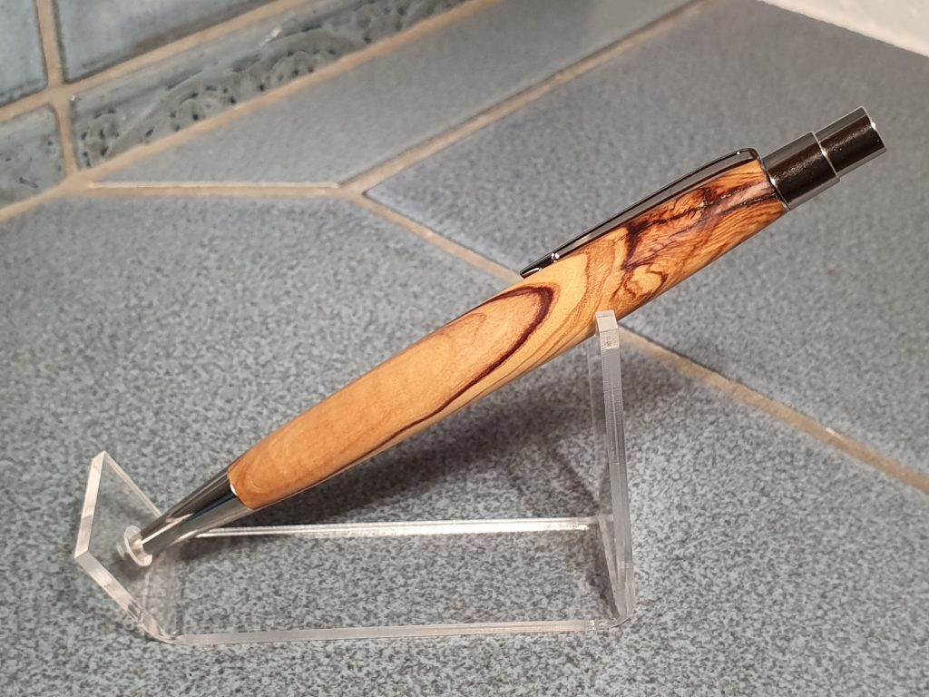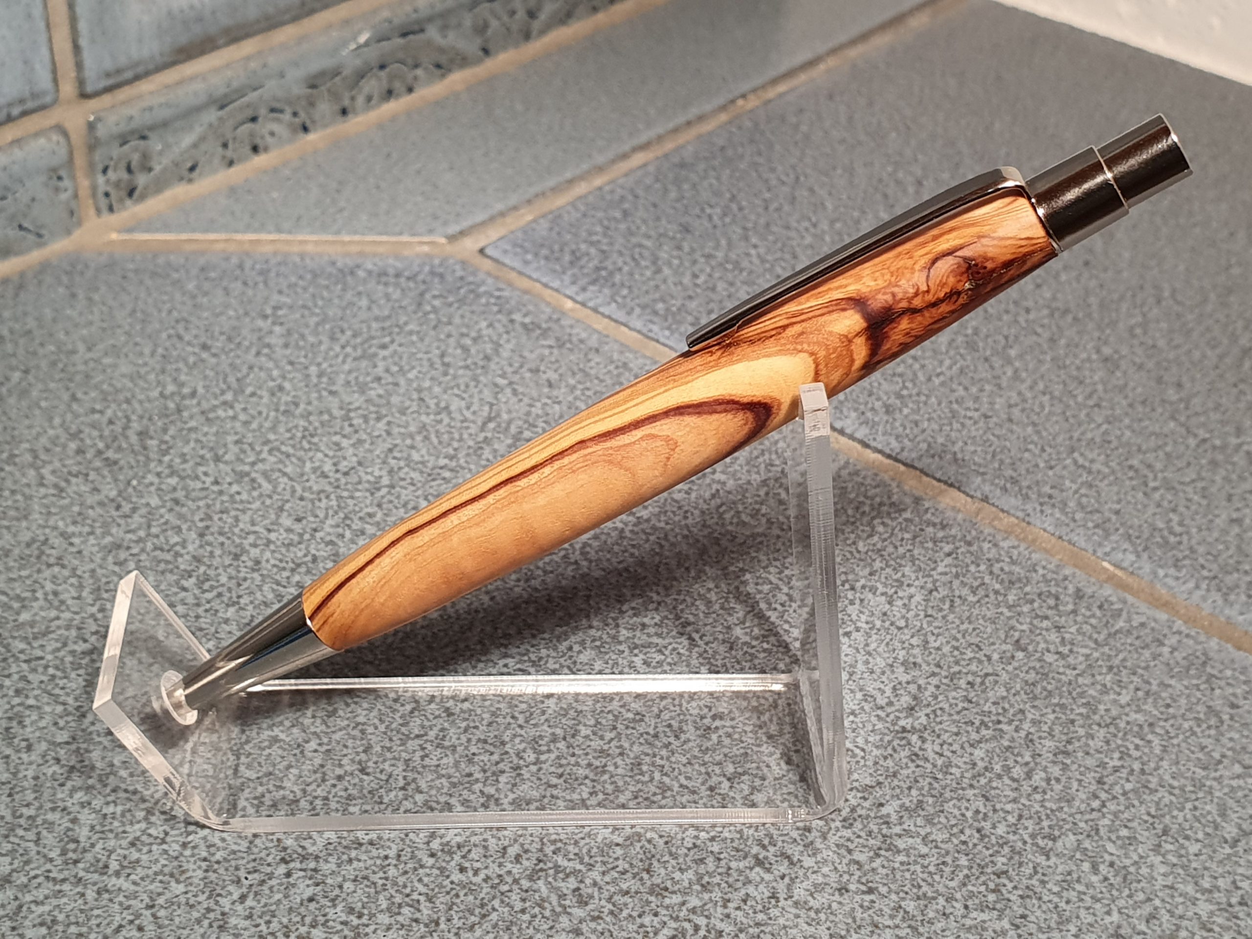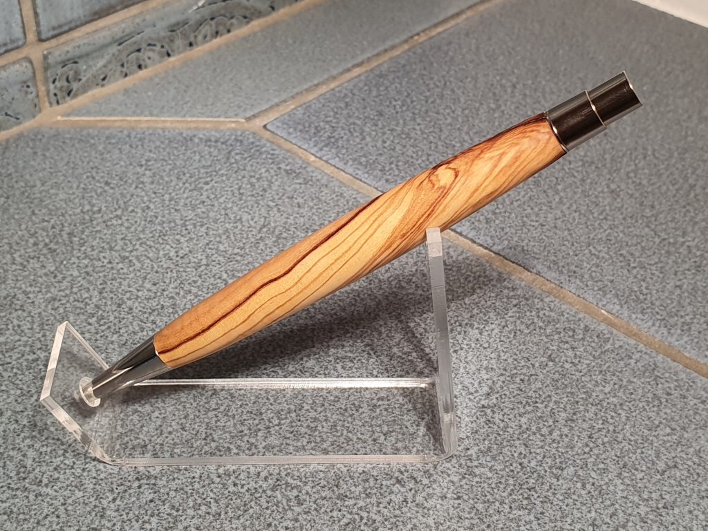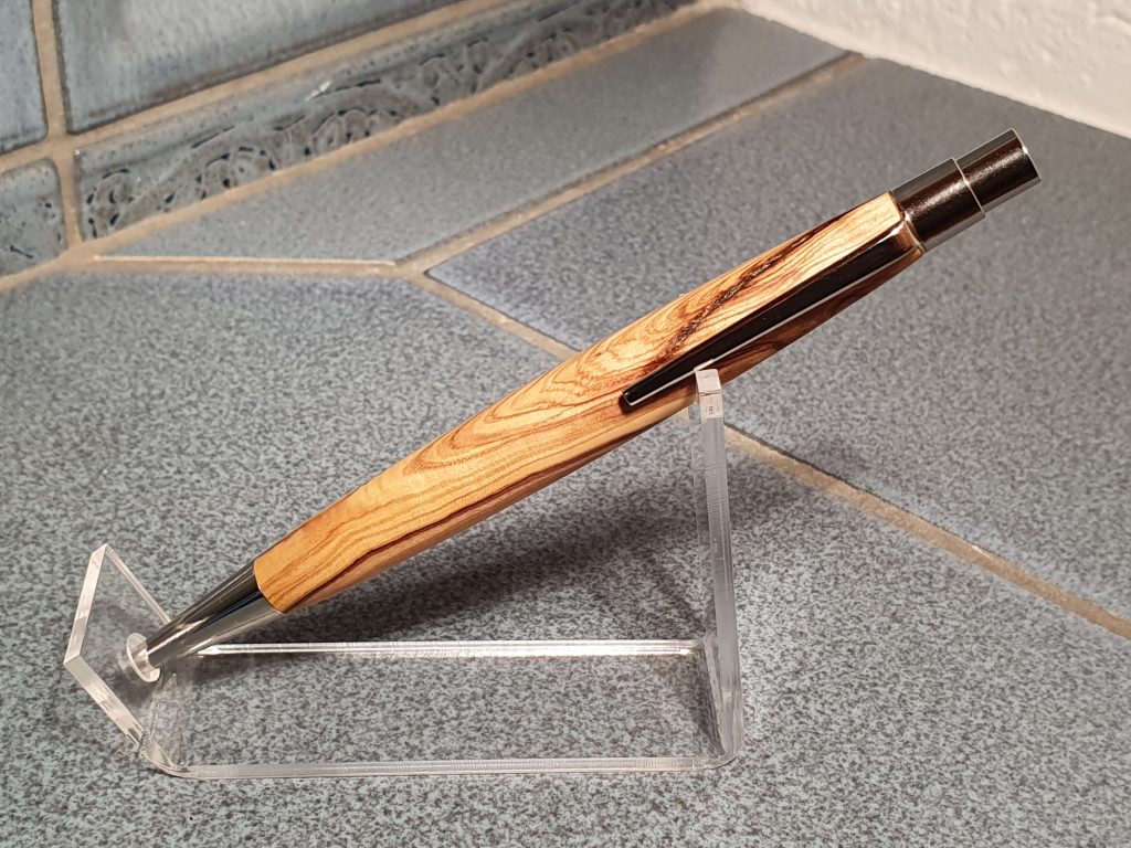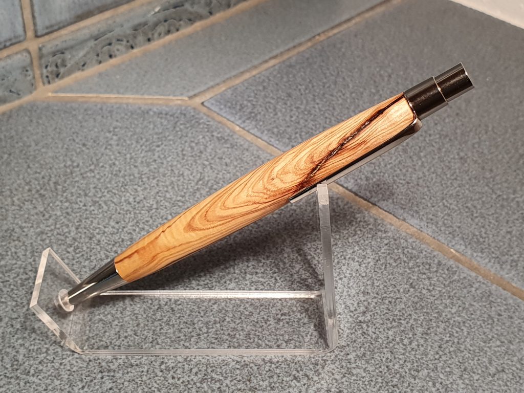 Die Tischleuchte ist 39 cm hoch und wurde aus Eibenholz gedrechselt. Die Oberfläche wurde abschließend mit Danish Oil von DICTUM behandelt.