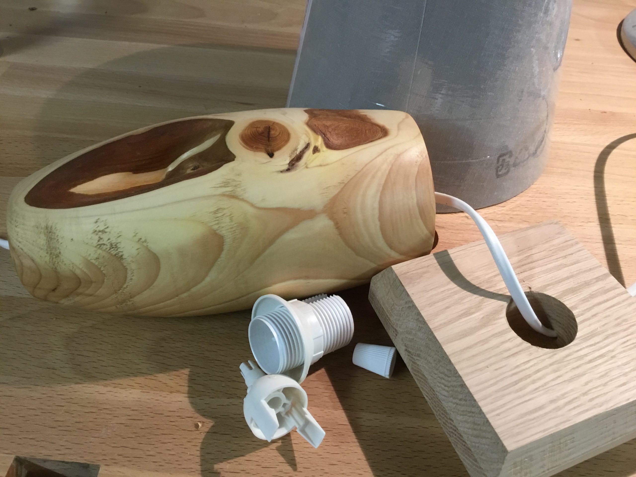 Gedrechselte Tischleuchte Eibe mit Verwachsungen
