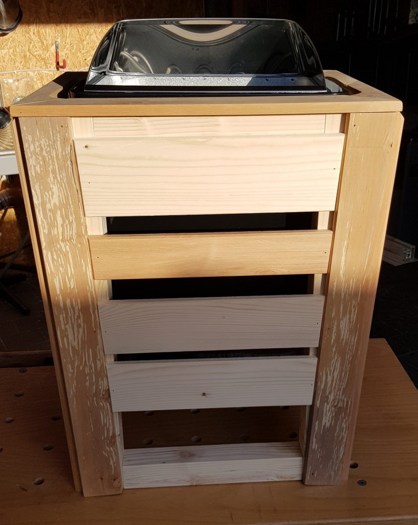 Hier wurde eine Massivholzarbeitsplatte verbaut. Bei der Platte handelte es sich um eine 40 mm Buche Leimholzplatte. Kanten wurden mit der Oberfräse abgerunden. Dann erfolgte der Schliff bis Körnung 180. Anschließen unzähliche Schichten Öl um eine gewisse wasserresistenz zu erhalten. Die beiden Ausschnitte wurden mit der Stichsäge ausgesägt. Im Nachhinein eher nicht zu empfehlen bei dieser Materialstärke. Auf die Aufkantung zum Fliesenspiegel wurde aus optischen Gründen verzichtet. Befestigung erfolgte mittels Langlöcher damit die Platte ungehindert arbeiten kann. Nachölen in regelmäßigen Zeitabständen ist zu empfehlen.