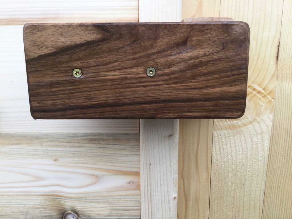 Diese Rückenlehne wurde mit einer Hobelmaschine hergestellt. Es wurde eine 30 Jahre alte Eichenbohle verarbeitet. Die Metallhalterungen wurden geschweißt und mit schwarzer Metallschutzfarbe bestrichen.