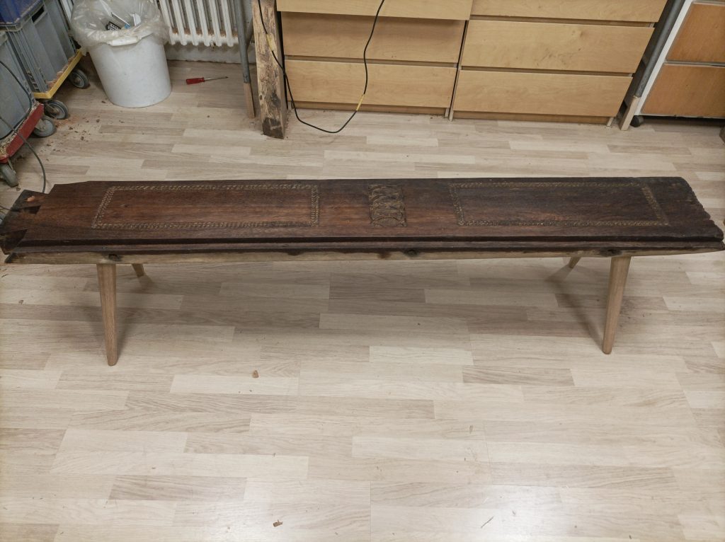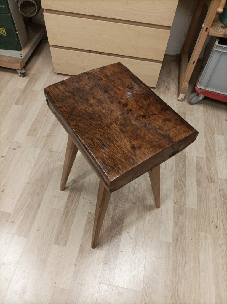 Couchtisch aus selbst mit großen Korpuszwingen verleimten Eichenbrettern. Ich wollte mal was anderes verwenden als die Leimholzbretter aus dem Baumarkt. Die Beine sind verdübelt und verschraubt. Oberfläche behandelt mit Hartwachsöl. Die Maße sind so abgestimmt dass der Tisch über den Couchhocker passt und sich leicht verrücken lässt.