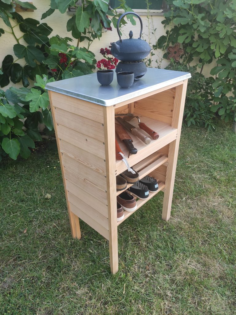 Der Ständer wurde aus einem ca.90 Jahre alten Balken und einem Kirschbrett gefertigt.Die Oberfläche wurde zum Schluss mit Leinöl behandelt.
