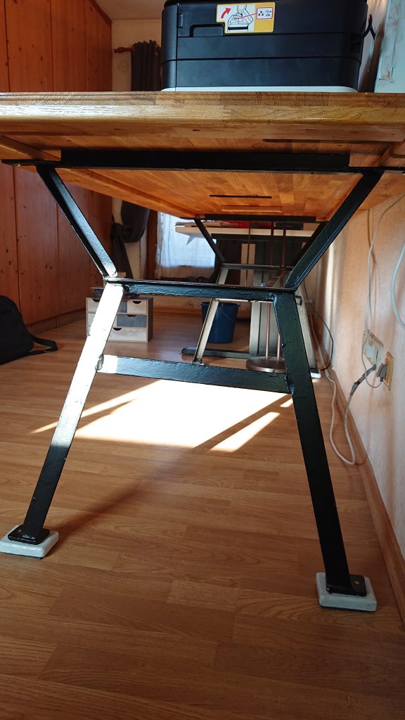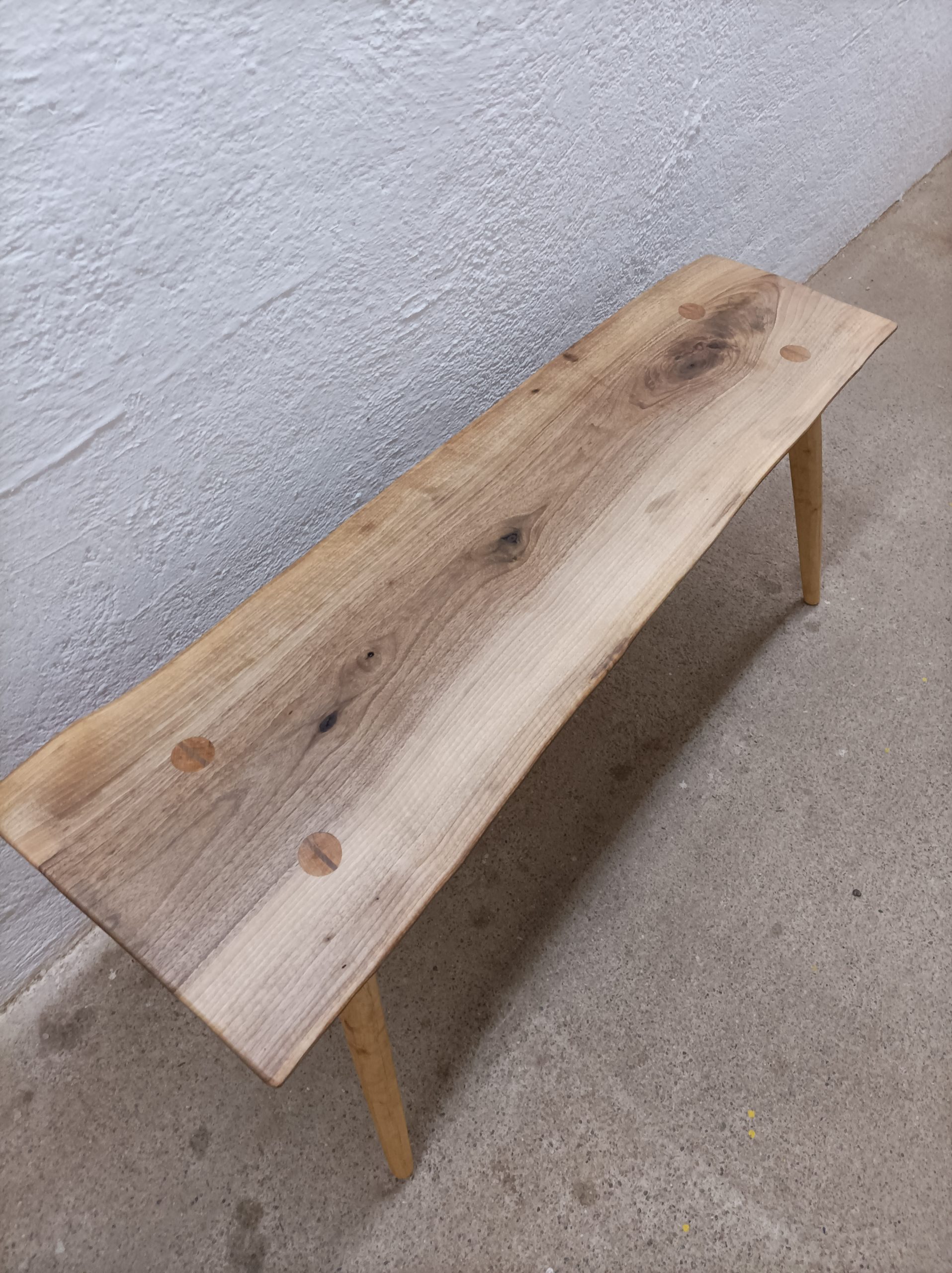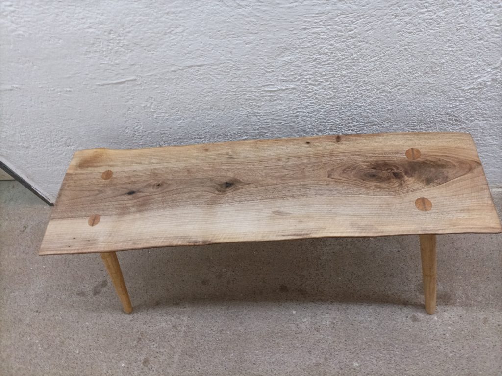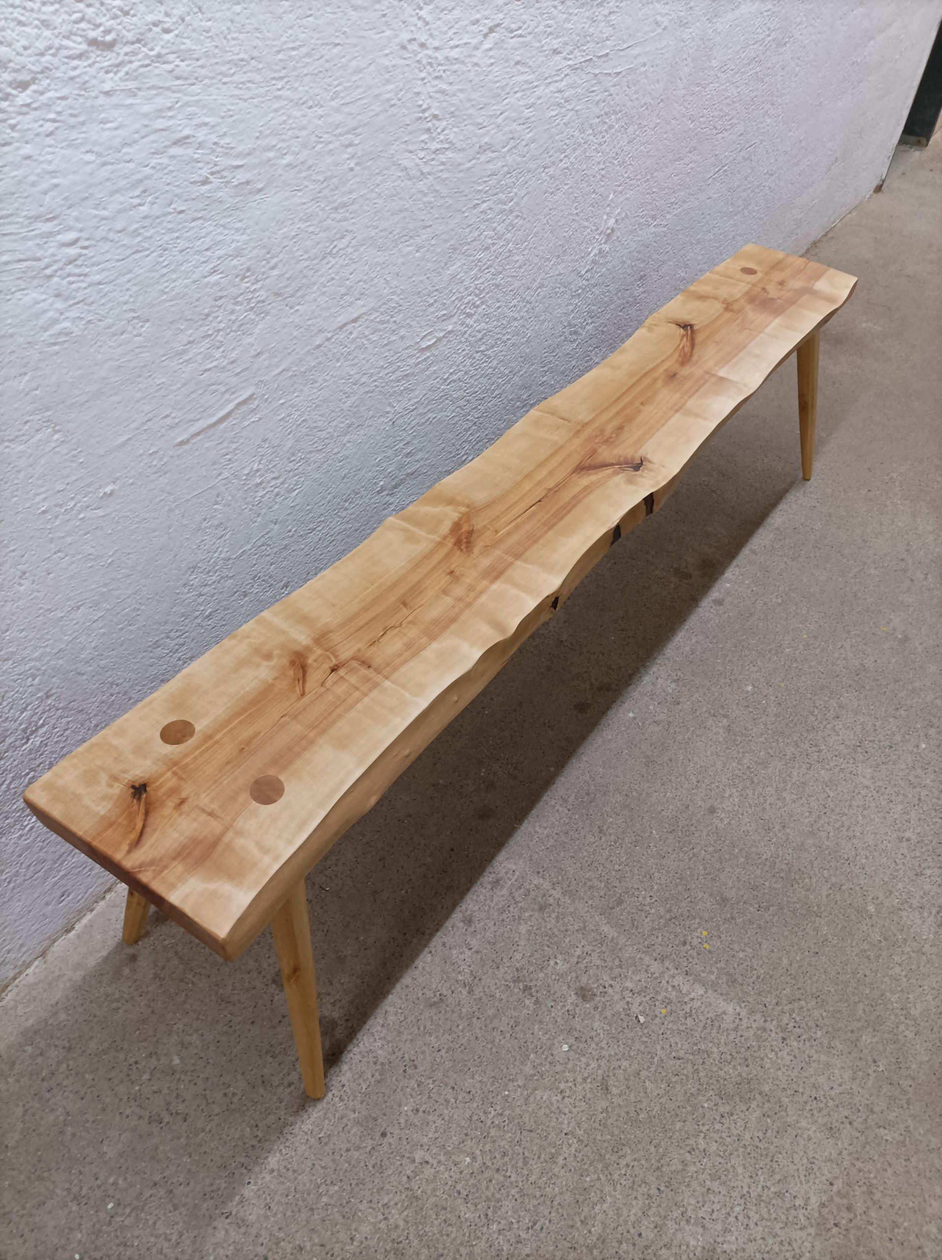 Da die Anrichte nicht nur farblich zur Terrassenüberdachung passen sollte, sondern auch unempfindlich gegen Feuchtigkeit sein muss, war eine Eigenkonstruktion aus Dreischichtplatten die einzige Wahl. Als Arbeitsplatte dient eine wasser- und kratzfeste HPL Platte, alle Korpusteile sind sind mehrfach mit Wetterschutzlasur behandelt. Der Korpus wurde mit Flachdübeln und D4-Leim wasserfest verleimt, die Regalböden sind verschraubt.
