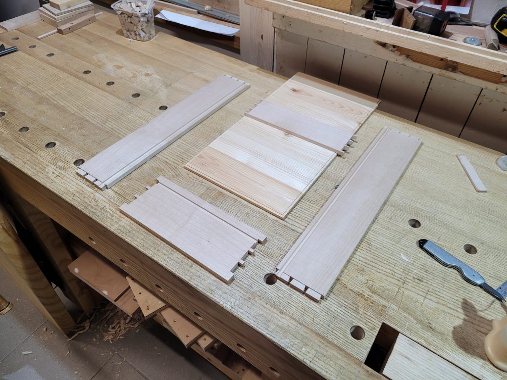 Verschiedene Blumentröge aus Lärchenholz. Gefertigt mit der Pégas Feinschnittsäge. Lackiert mit Xyladecor Langzeitschutz Oregon.
