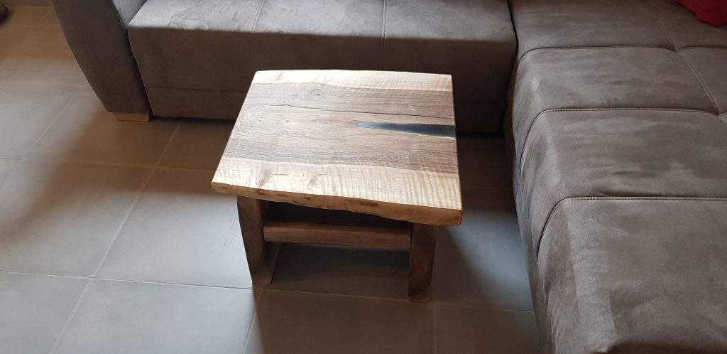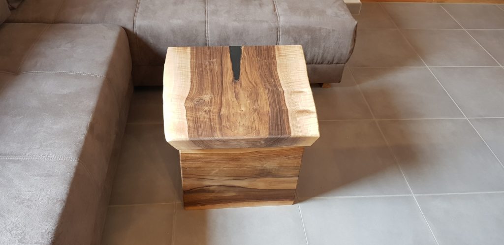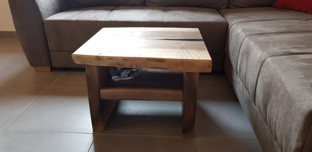 Coutschtisch aus Nussbaum mit schwarzem Epoxidharz.