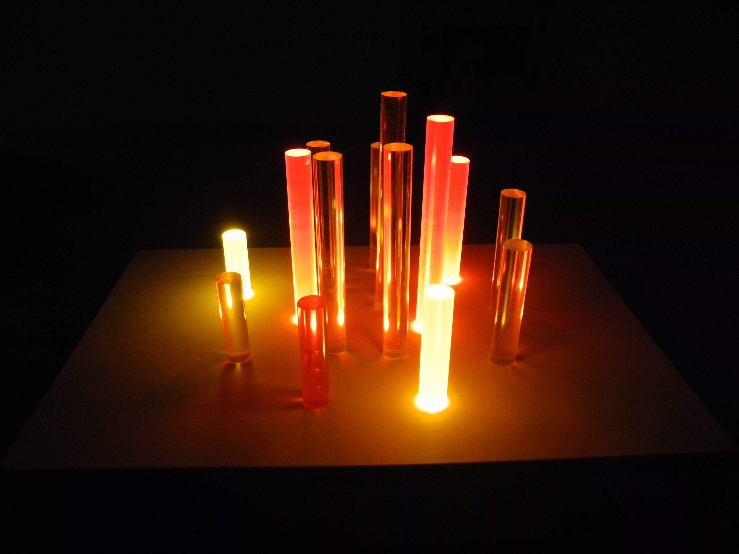 Dieses dekorative sowie einfach herzustellende Nachtlicht wird mit einer 4,5 V Flachbatterie betrieben, hat aber dennoch eine sehr lange Leuchtzeit aufgrund der sparsamen LEDs, welche als Leuchtmittel verwendet werden. Das Gehäuse ist aus Sperrholzplatten gefertigt und stumpf verleimt. Anschließend wurden Acrylglasstäbe abgelängt und in die spiralförmig angeordneten Bohrungen in der Deckplatte geklebt. Einige der Stäbe werden von unten durch eine LED beleuchtet und bringen so auch die weiteren unbeleuchteten Acrylglasstäbe zum Leuchten.