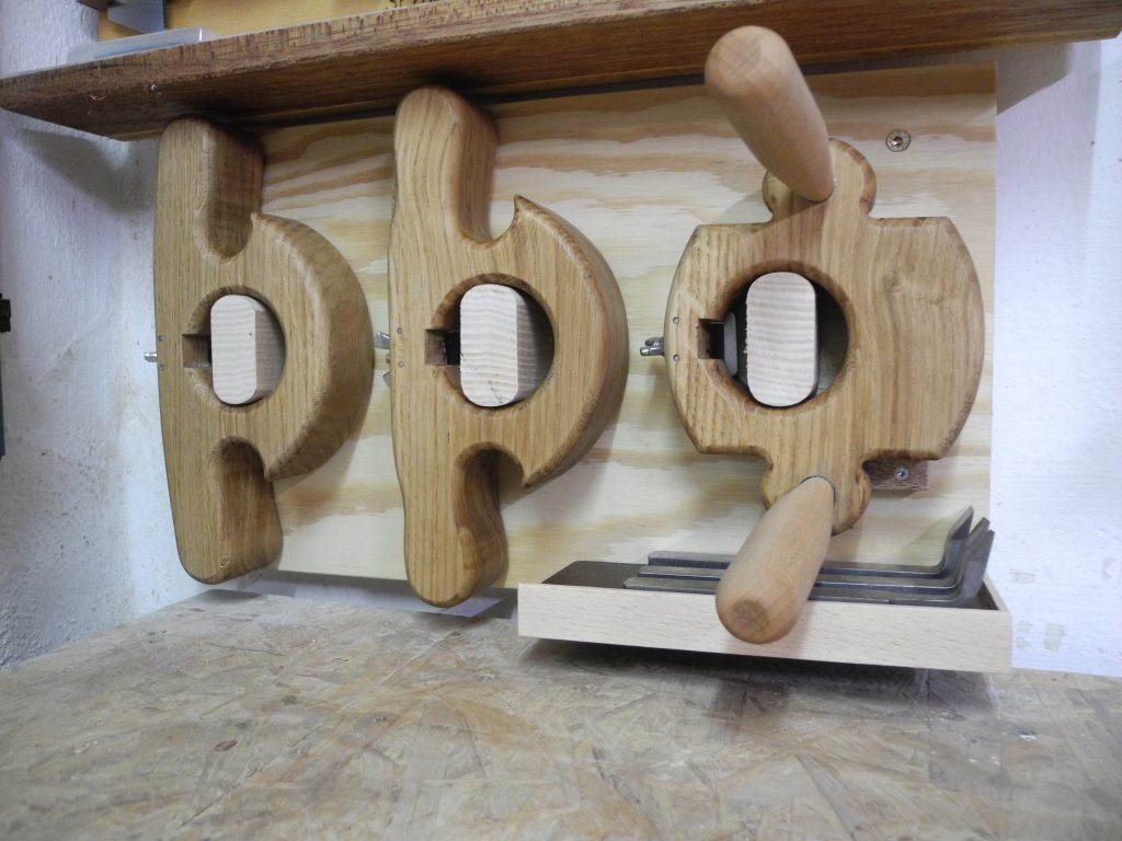 Schreibtischorganizer aus Erle. Mittels Japansäge wurde ein 2,5cm dickes Erlenbrett aufgetrennt und anschließend mit dem Flachwinkelhobel auf rund 8mm Dicke gehobelt. Um die Unterteilungen besser verleimen zu können wurden in die Seitenteil Nuten eingesägt und mit dem Grundhobel ausgehobelt. Die Unterteilungen wurden anschließend in diese Nuten geleimt. Nach der Verleimung wurden die Rundungen mit Hobel, Holzraspel und Schleifpapier herausgearbeitet. Mehreren Schichten Schellack versiegeln die Oberfläche.