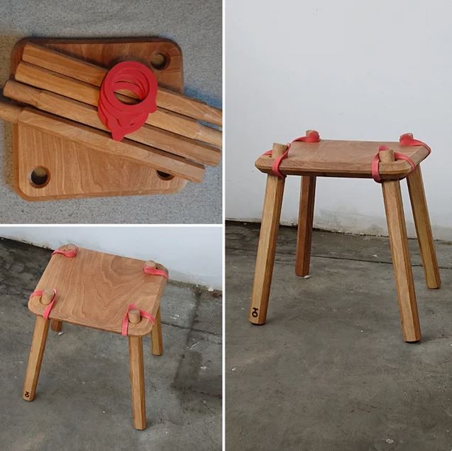 Aus Schwartenhölzern; schnell gerftigt mit Kobiki Astsäge, Handbohrer, Holzdübeln und Hammer.
