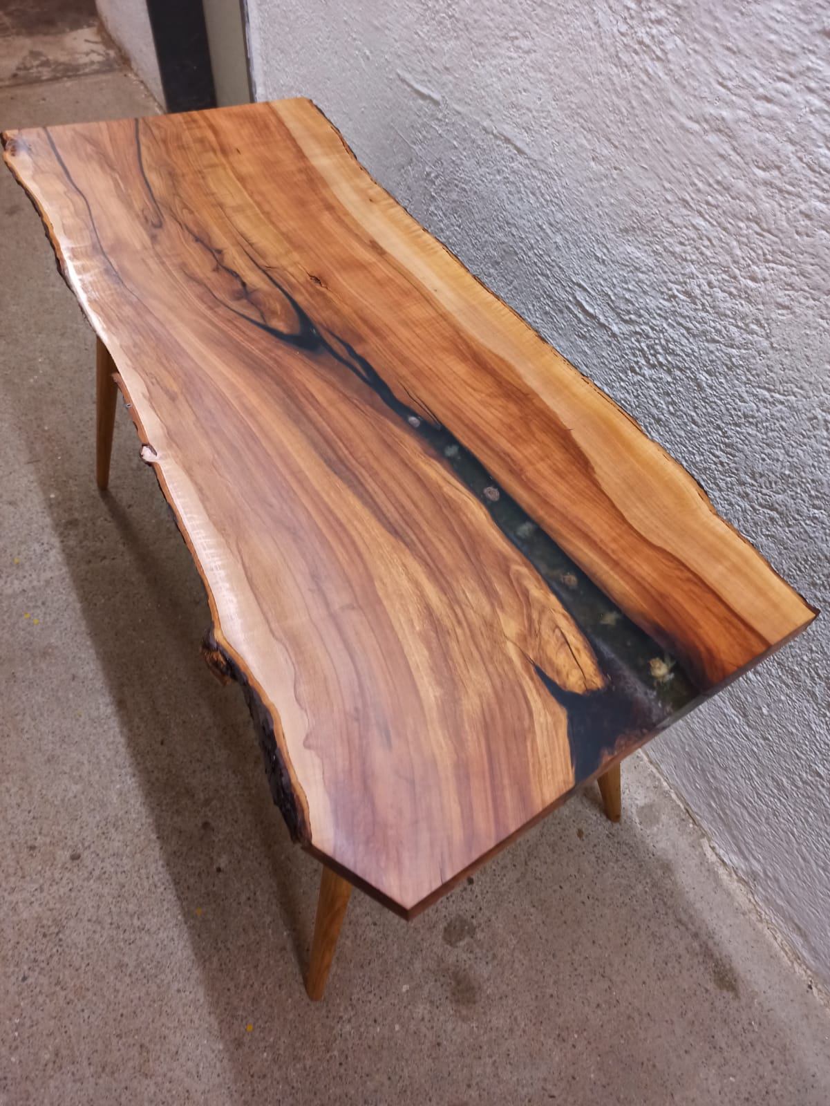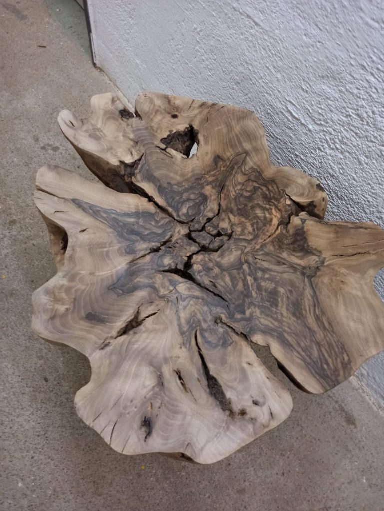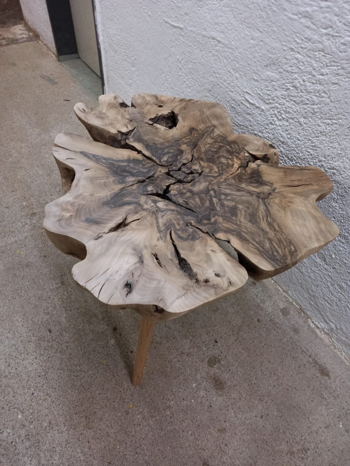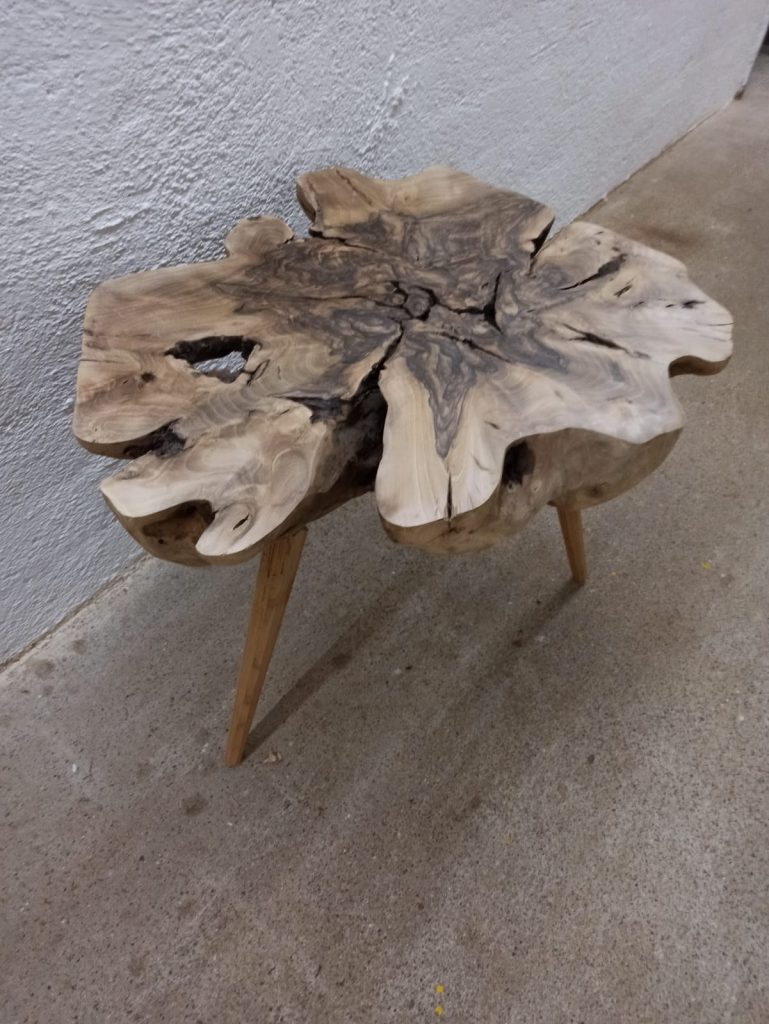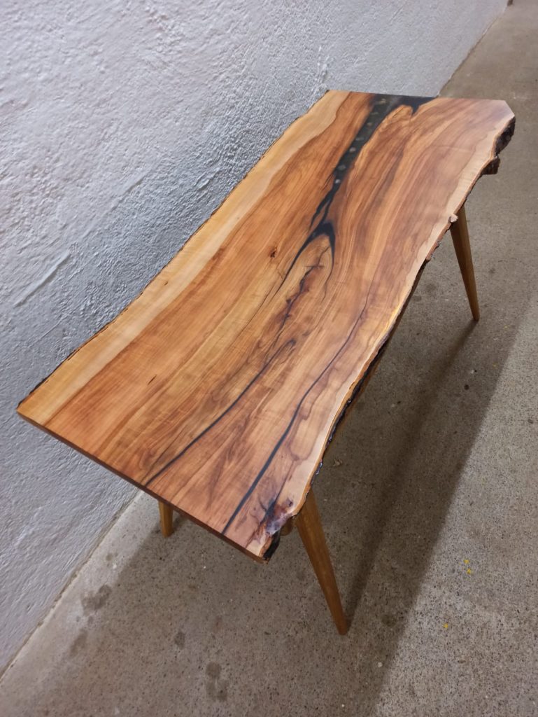 Tisch aus gestockter Buche. Mit Danish Oil behandelt.