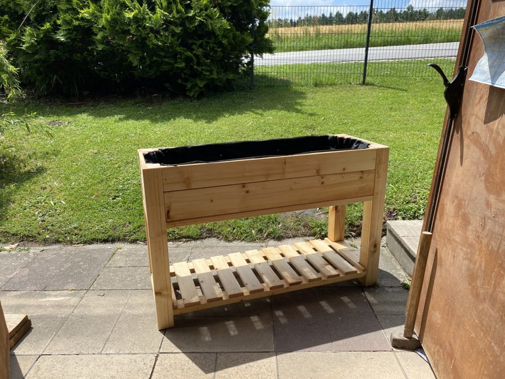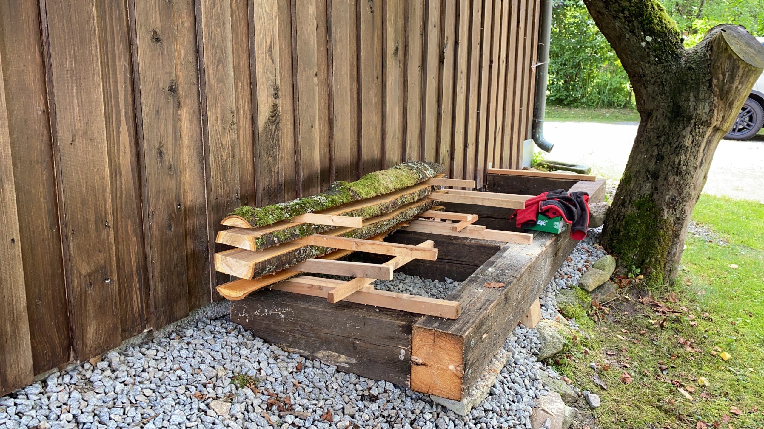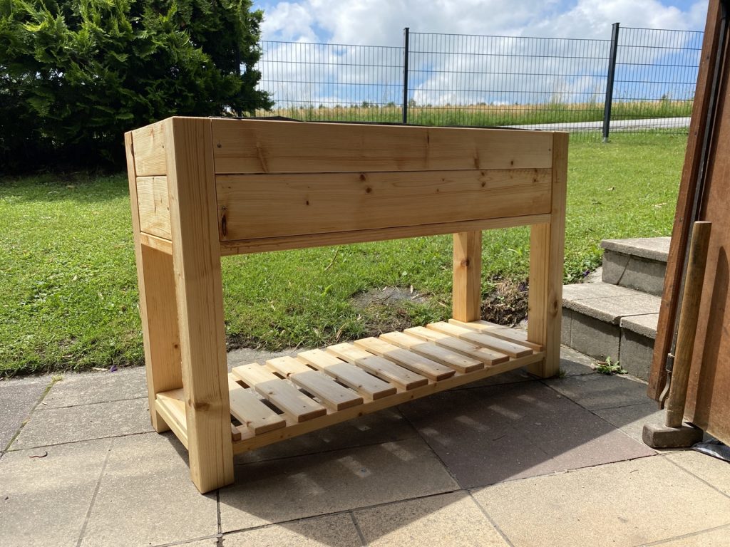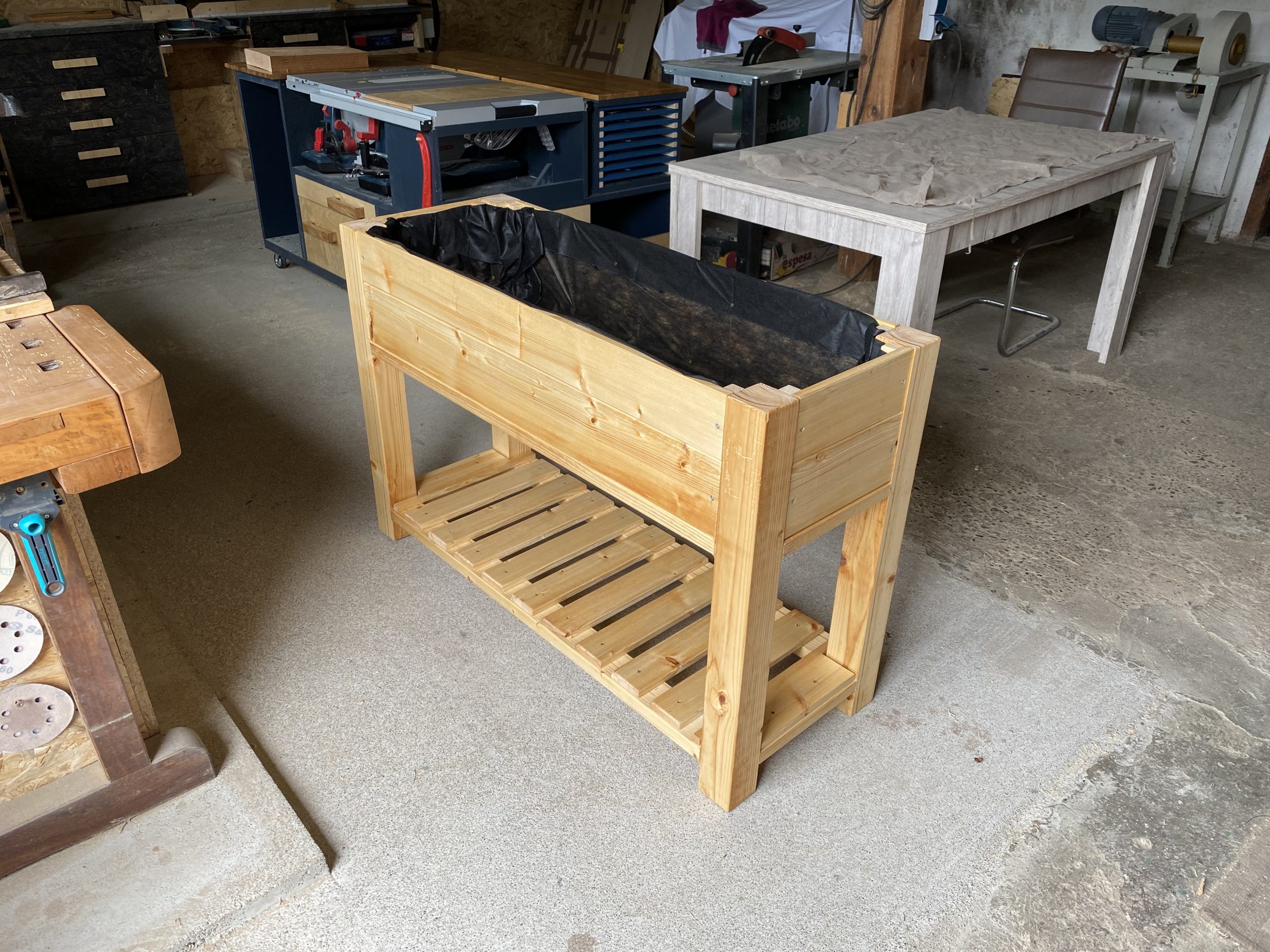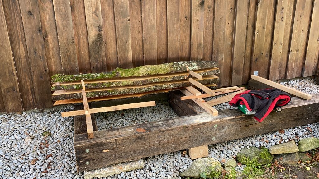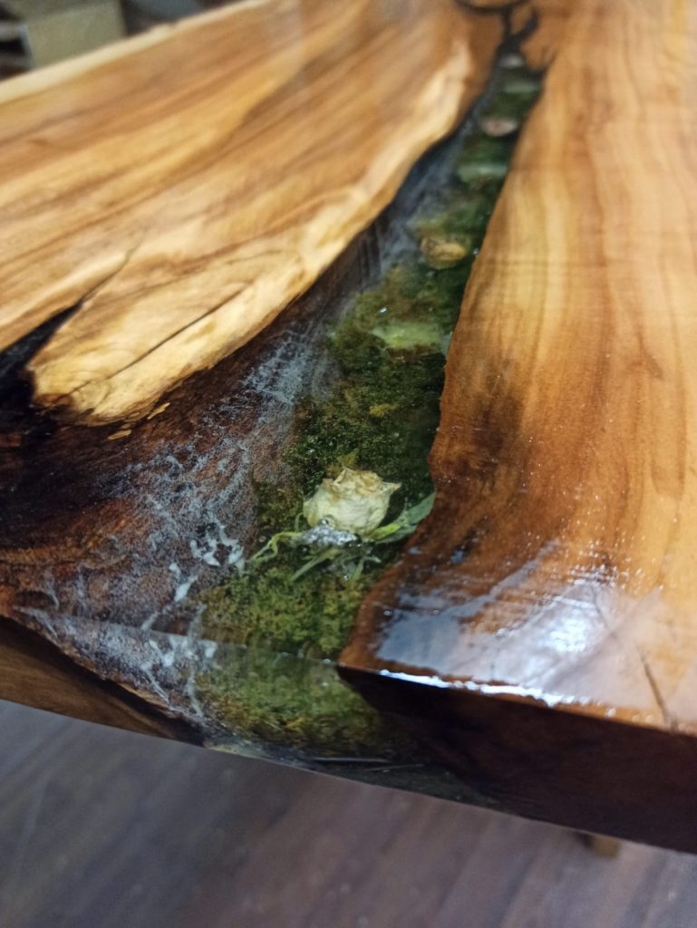 Tisch aus gestockter Buche. Mit Danish Oil behandelt.