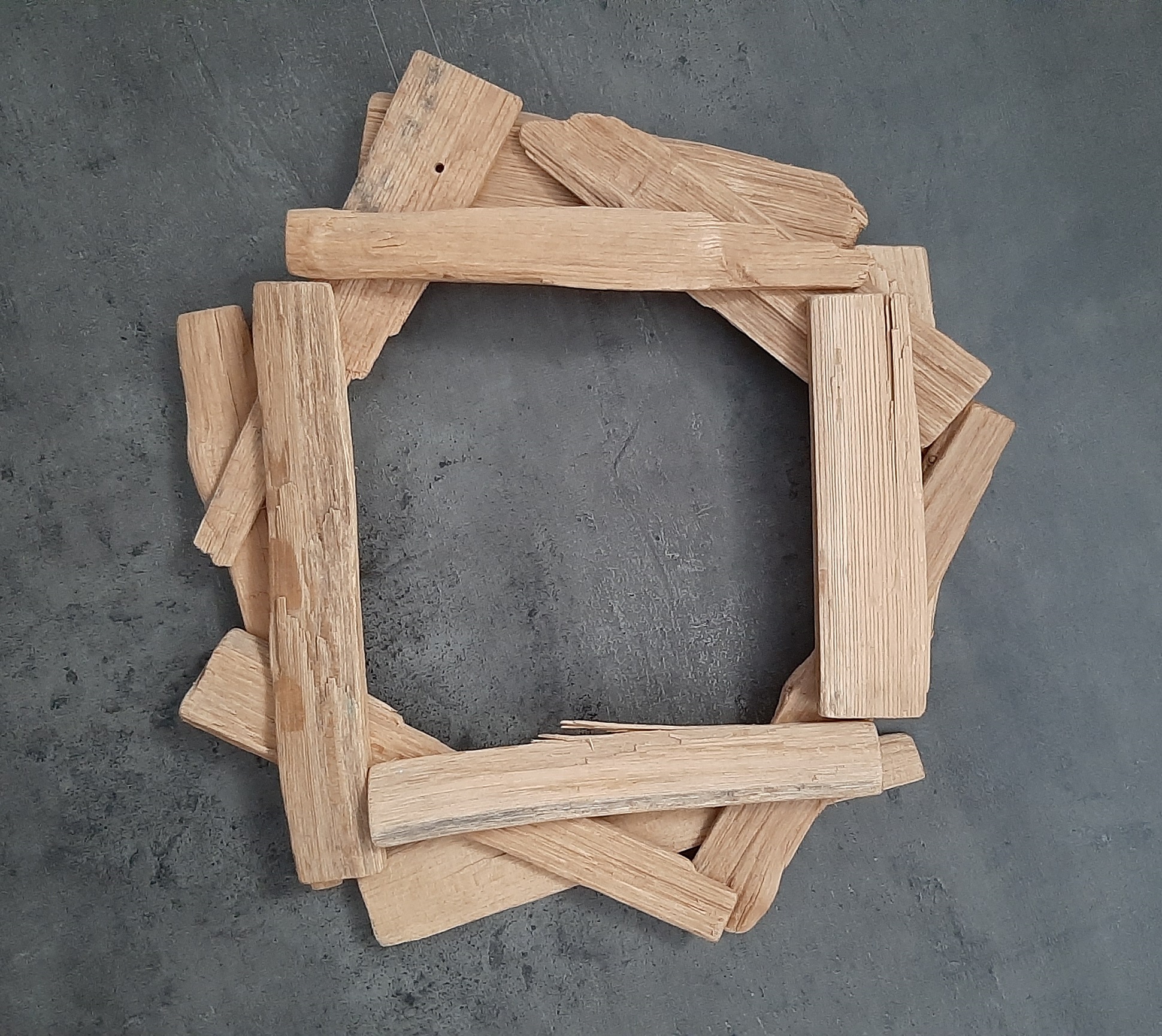 Die Holzscheite waren für den Kamin zu schade. Diese wurden gesäubert und zu einem Holzkranz zusammengefügt.