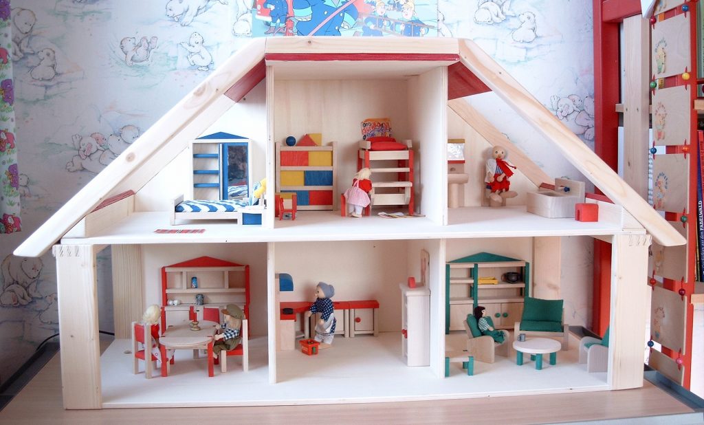 Das Puppenhaus mit wurde für die Größe handelsüblicher Puppen erstellt. Gesägt an der Tischkreissäge und gezinkt- für eine stabilere Konstruktion. Abgerundet mit der Oberfräse.