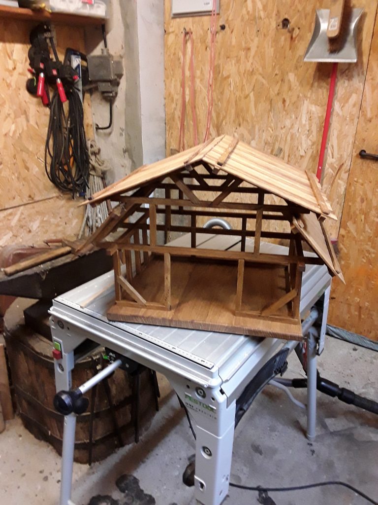 Dieses Gestell dient zur Trocknung von Walnüssen. Es ist aus einfachen Latten gebaut und komplett zerlegbar, falls man es mal nicht braucht. Nur der obere und untere Rahmen sind mit Schrauben und Flügelmutter befestigt. Die anderen Böden liegen auf Dübeln auf und sind herausnehmbar, damit man die Nüsse mal bewegen kann.