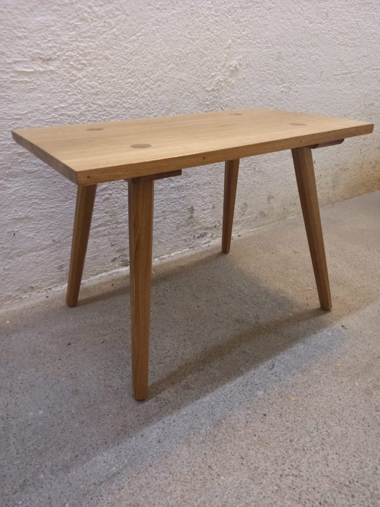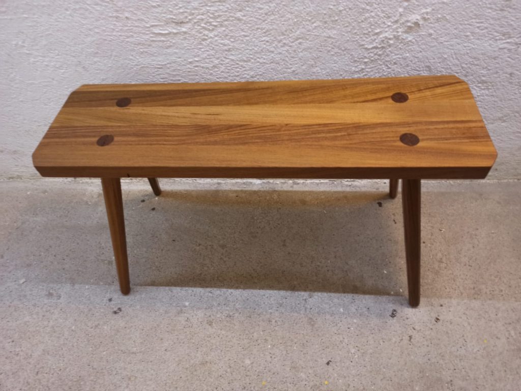Richtstäbe oder Winding Sticks dienen dazu, Verdrehungen von Holz zu erkennen und das erforderliche Abrichten zu kontrollieren. Sie werden an den Enden des Werkstücks aufgelegt, und beim Visieren über beide Leisten hinweg müssen die beiden fluchten. Ich fertigte meine Exemplare aus Ahorn und Mahagoni. Dübelstäbe aus dem jeweils anderen Holz markieren die Mitte. Das Holz für die Stäbe wurde über mehrere Tage hinweg immer wieder aberichtet, so dass sich möglichst alle Spannungen ausgleichen konnten. Als Werkzeuge dienten Handsägen, Hobel verschienster Größe, eine Lie Nielsen Dübelplatte, Fisch Holzbohrer. Als Finish wurde DICTUM HolzBalsam aufgetragen.