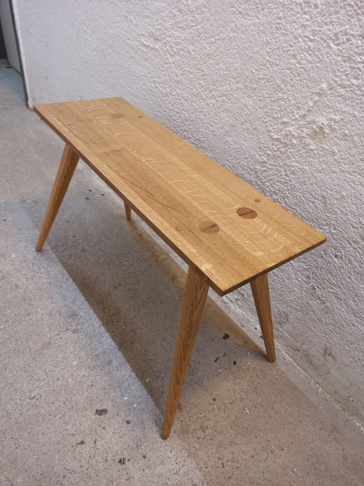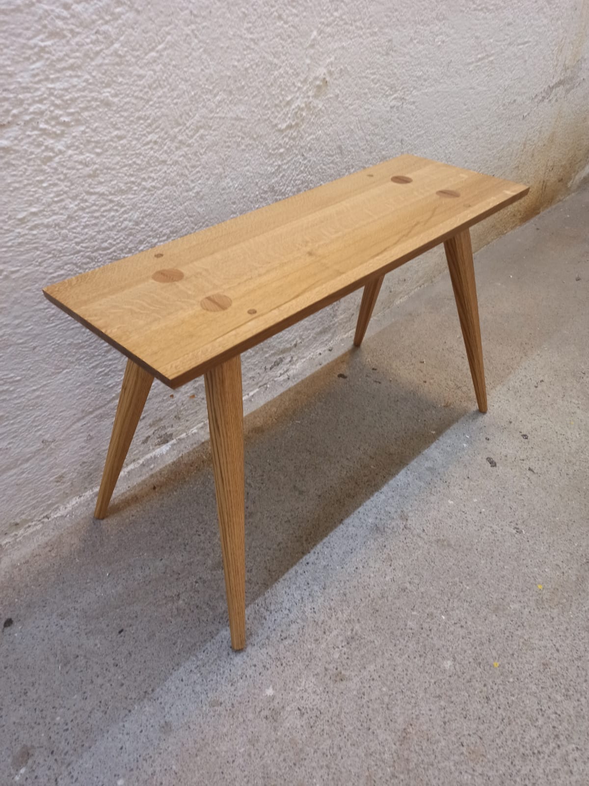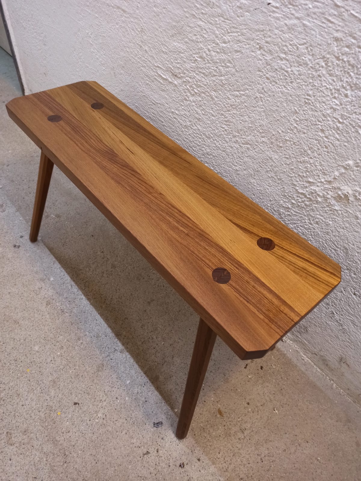 Richtstäbe oder Winding Sticks dienen dazu, Verdrehungen von Holz zu erkennen und das erforderliche Abrichten zu kontrollieren. Sie werden an den Enden des Werkstücks aufgelegt, und beim Visieren über beide Leisten hinweg müssen die beiden fluchten. Ich fertigte meine Exemplare aus Ahorn und Mahagoni. Dübelstäbe aus dem jeweils anderen Holz markieren die Mitte. Das Holz für die Stäbe wurde über mehrere Tage hinweg immer wieder aberichtet, so dass sich möglichst alle Spannungen ausgleichen konnten. Als Werkzeuge dienten Handsägen, Hobel verschienster Größe, eine Lie Nielsen Dübelplatte, Fisch Holzbohrer. Als Finish wurde DICTUM HolzBalsam aufgetragen.