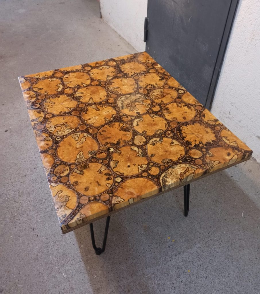 Der Tisch für die überdachte Terrasse war mein erstes Projekt, durch welches ich auch Gefallen an der Arbeit mit Holz gefunden habe. Hergestellt wurde dieser mit Fichtenbohlen sowie Kanthölzern und ein paar Latten (ebenfalls aus Fichte) aus dem Baumarkt. Als Finish und zum Schutz vor Feuchtigkeit wurde der Tisch noch zweimal mit Hartwachsöl eingerieben.