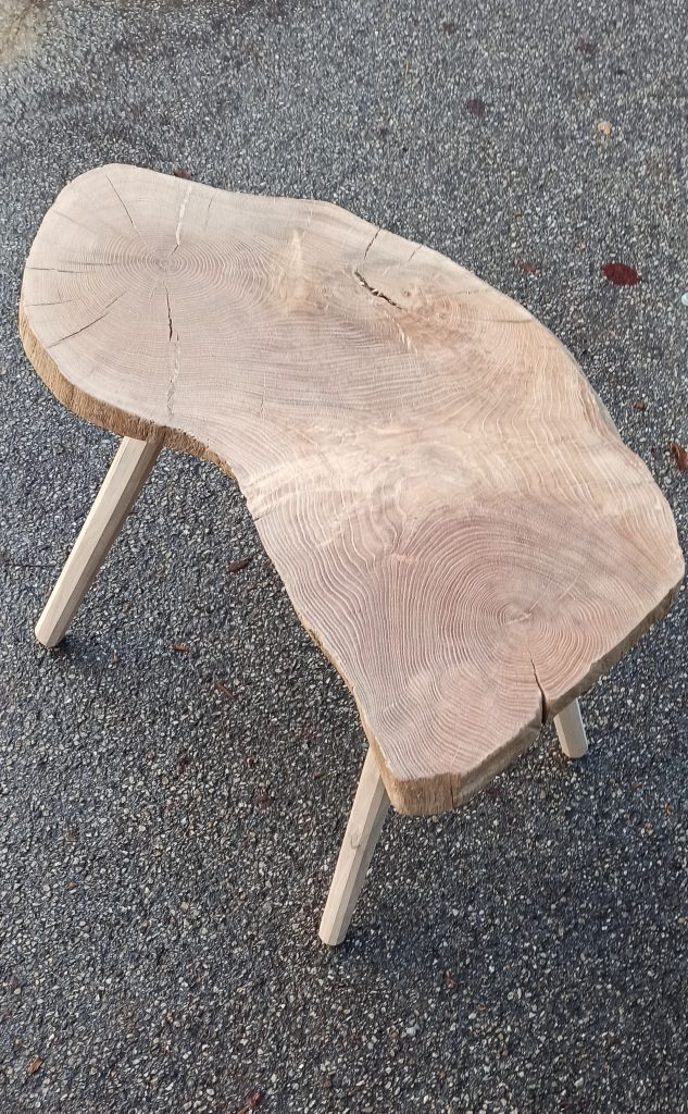 Um Bretter von Hand zu besäumen ist eine Sägebank erste Wahl. Die Haltung ist ergonomisch und der Schnitt läßt sich leicht geradeaus steuern. Ich fertigte mein Exemplar in Anlehnung an die Version von Tom Fidgen aus seinem Buch „The unplugged Woodshop“ aus dem DICTUM-Bücherangebot. Als Material stand eine Bohle aus Esche zur Verfügung, die maschinell aufgetrennt, abgerichtet und auf Stärke gehobelt wurde. Beine und Zargen wurden anschließend mit Schlitz (teilweise durchgestemmt) und Zapfen verbunden. Die Oberseite wurde mit einer Grat-Verbindung an den Beinen und den oberen Zargen befestigt und von unten mit Dübeln gesichert. Alle Verbindungen wurden, schon um den Zusammenbau zu erleichtern, auf Zug verdübelt und teilweise verkeilt. Als Werkzeuge kamen asiatische und westlich Handsägen, Stemmeisen, Streichmaße, Handhobel, Grathobel und vieles mehr zum Einsatz. Die Dübel wurden mit der Dübelplatte von Lie Nielsen aus Eiche hergestellt.