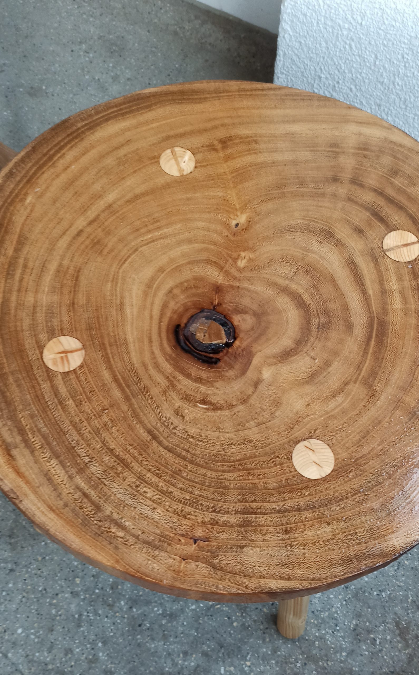 Um Bretter von Hand zu besäumen ist eine Sägebank erste Wahl. Die Haltung ist ergonomisch und der Schnitt läßt sich leicht geradeaus steuern. Ich fertigte mein Exemplar in Anlehnung an die Version von Tom Fidgen aus seinem Buch „The unplugged Woodshop“ aus dem DICTUM-Bücherangebot. Als Material stand eine Bohle aus Esche zur Verfügung, die maschinell aufgetrennt, abgerichtet und auf Stärke gehobelt wurde. Beine und Zargen wurden anschließend mit Schlitz (teilweise durchgestemmt) und Zapfen verbunden. Die Oberseite wurde mit einer Grat-Verbindung an den Beinen und den oberen Zargen befestigt und von unten mit Dübeln gesichert. Alle Verbindungen wurden, schon um den Zusammenbau zu erleichtern, auf Zug verdübelt und teilweise verkeilt. Als Werkzeuge kamen asiatische und westlich Handsägen, Stemmeisen, Streichmaße, Handhobel, Grathobel und vieles mehr zum Einsatz. Die Dübel wurden mit der Dübelplatte von Lie Nielsen aus Eiche hergestellt.