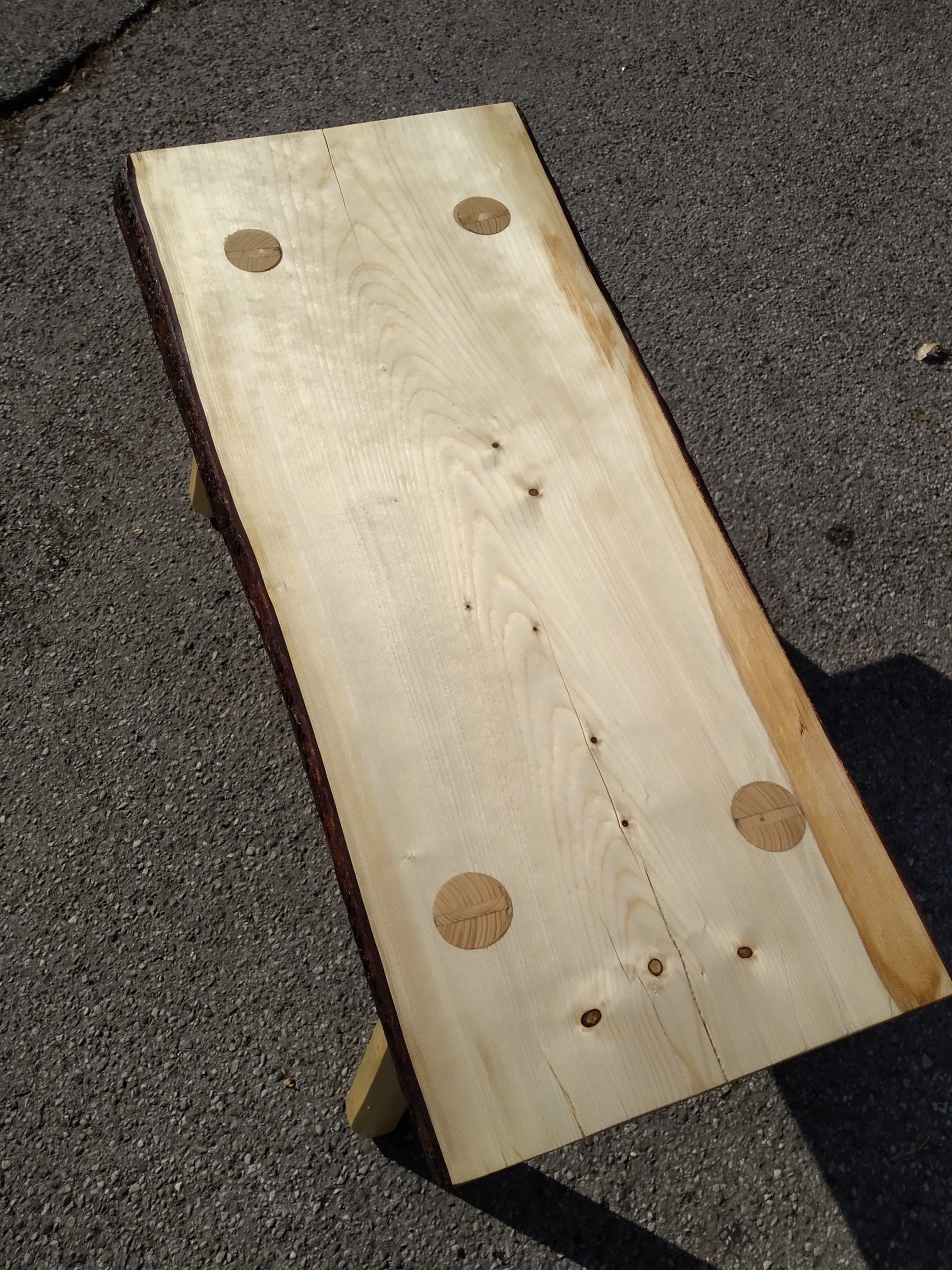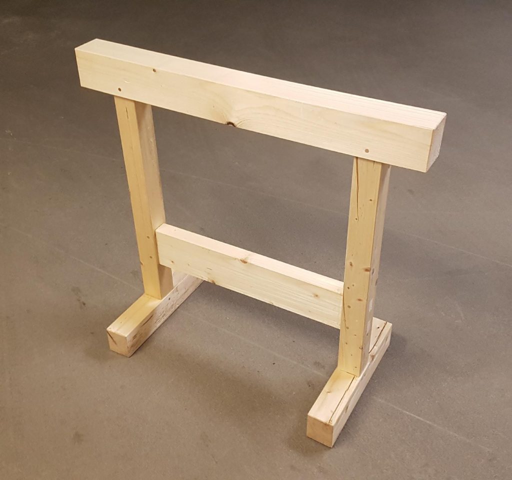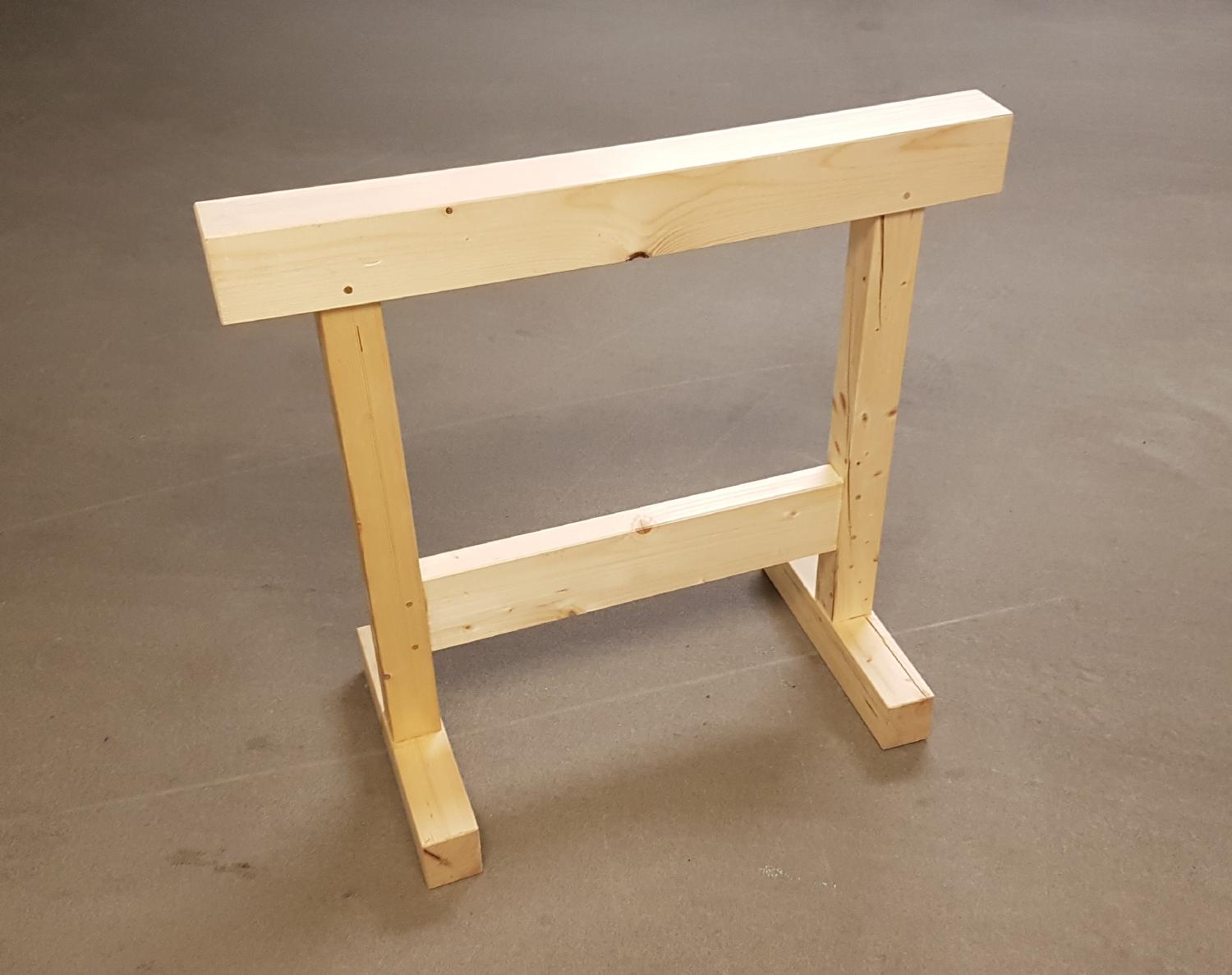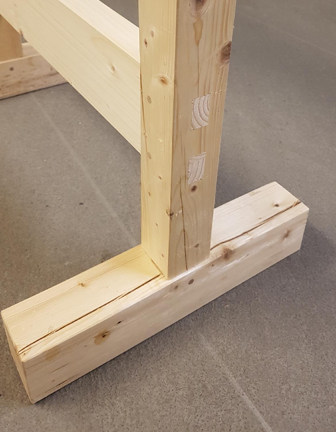 Dieser Arbeitsbock entstand zunächst als Erweiterung der Hobelbank, um auch mal überlange Werkstücke auflegen und bearbeiten zu können. Als Material wurde altes Bauholz verwendet, zunächst maschinell abgerichtet, verleimt und auf Maß gebracht. Die Schlitze für die Schlitz- und Zapfenverbindungen wurden mit Fisch Holz- und Forstner-Bohrern grob vorgebohrt und anschließend mit DICTUM Stemmeisen ausgearbeitet. Die Zapfen wurde mit einer Ryoba abgesetzt und mit einem Simshobel geputzt. Alle Verbindungen wurden mit Titebond II verleimt und zusätzlich mit selbst hergestellten Dübeln gesichert. Die Dübel wurden mit der Lie Nielsen Dübelplatte hergestellt.