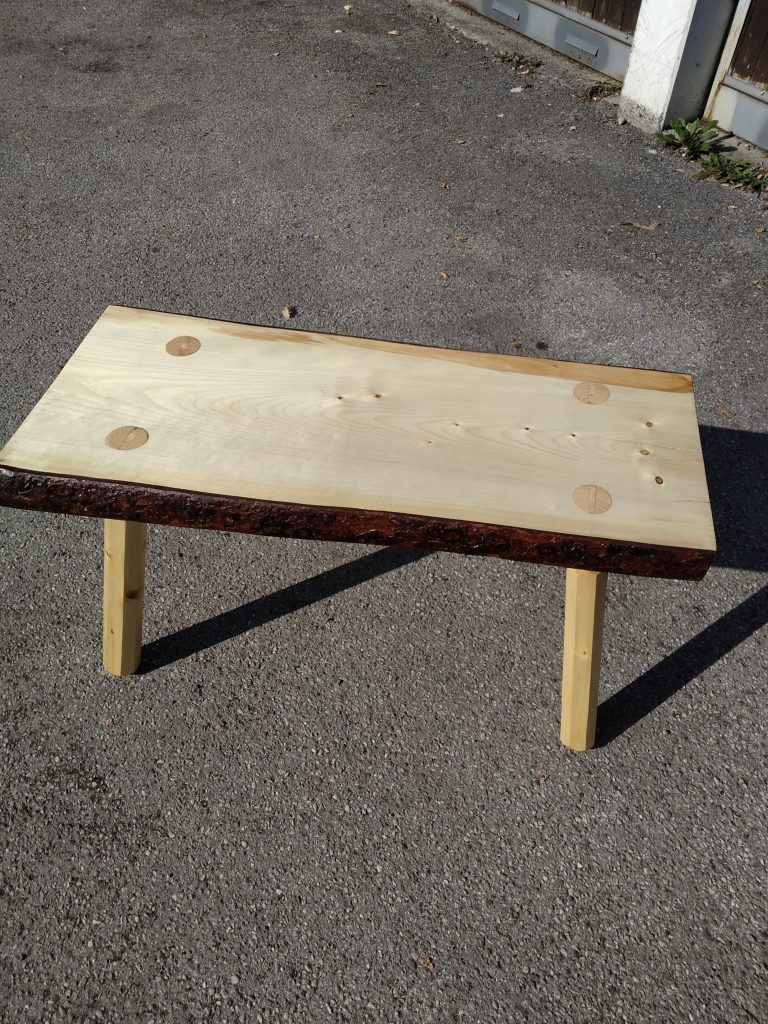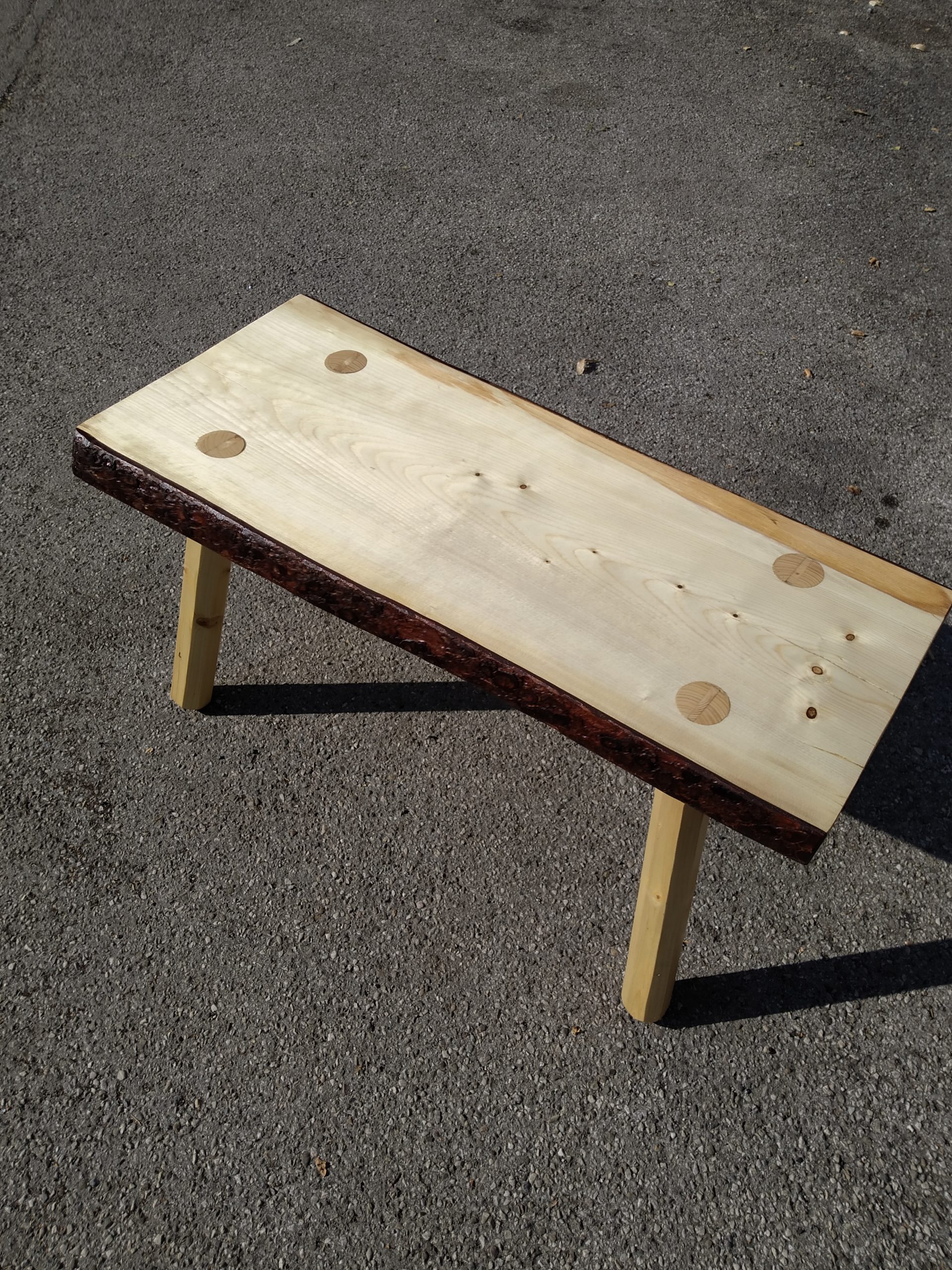 Gemeinschafts-Projekt von Kraus Gerhard und Schwab Karl-Heinz. Tischplatte aus grüner Lärche, wurde mit Pentacryl Grünholz Stabilisator gefertigt. Mit ASUSO NL Lärchenöl eingelassen und endbehandelt mit Kirjes Ölwachs. Das Handgeschmiedete Gestell ist nach dem Schmieden mit Stahlbürsten gereinigt worden und dann auf die Oberfläche Kirjes Ölwachs aufgetragen.