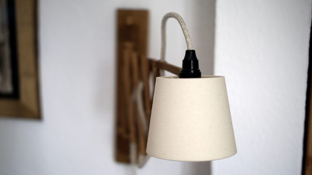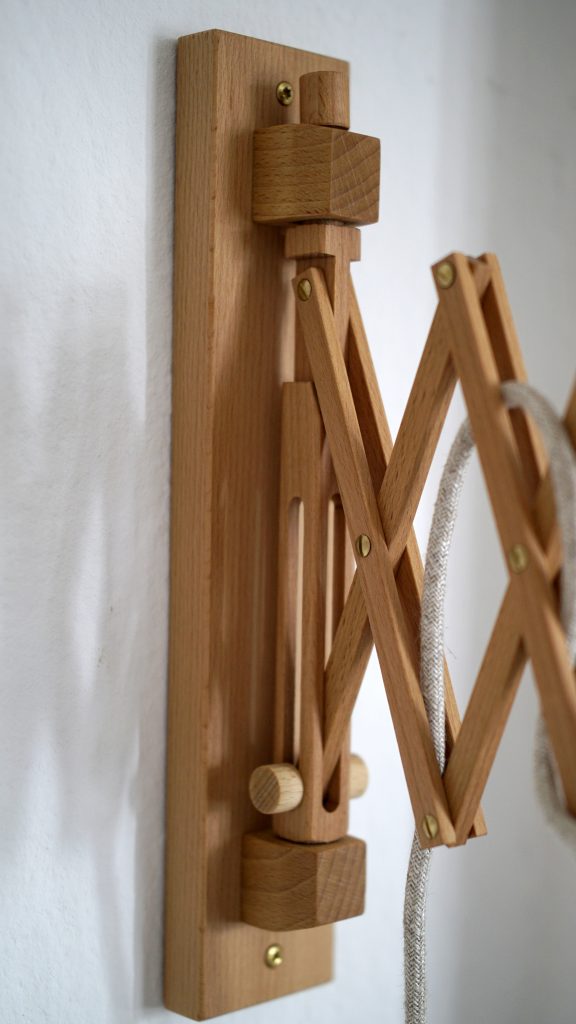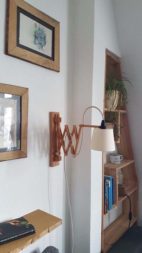 Scherenlampe aus Restholz