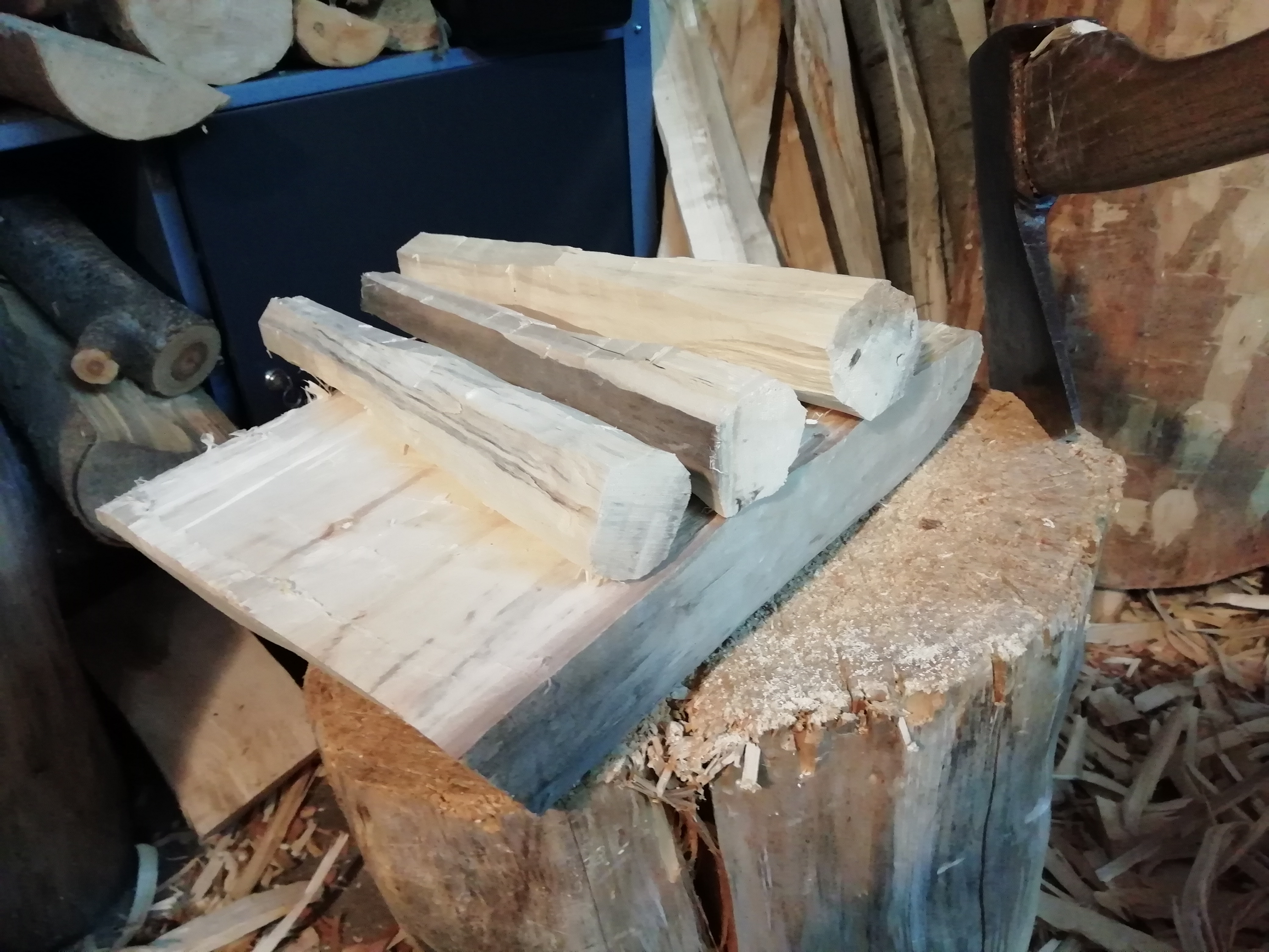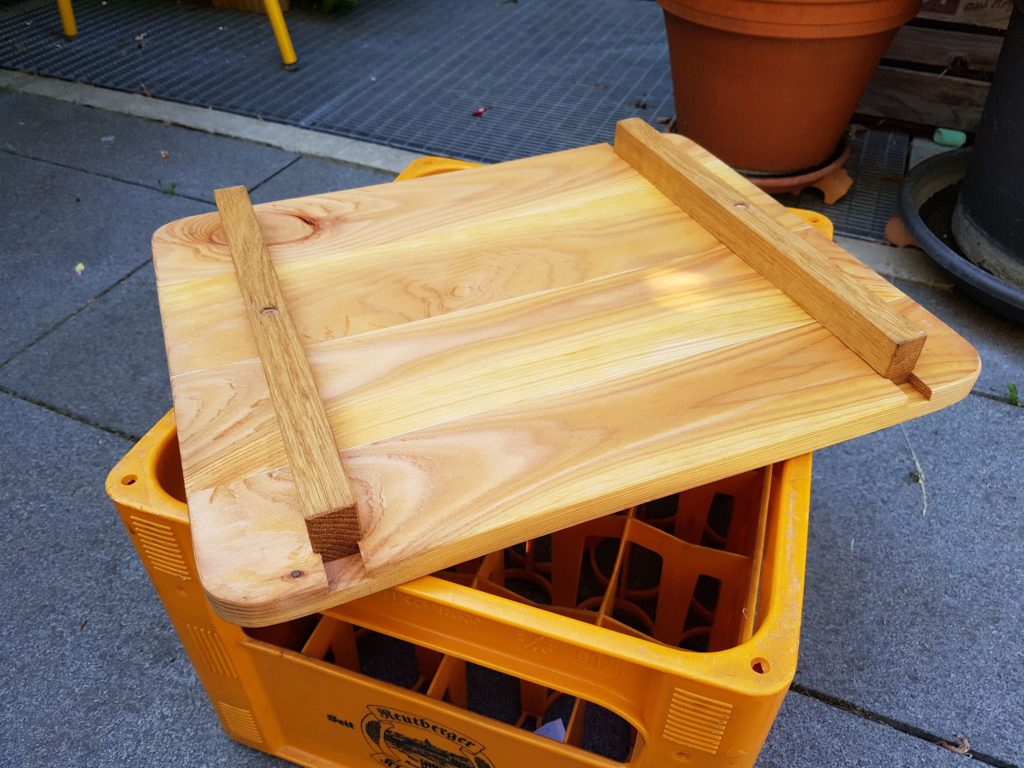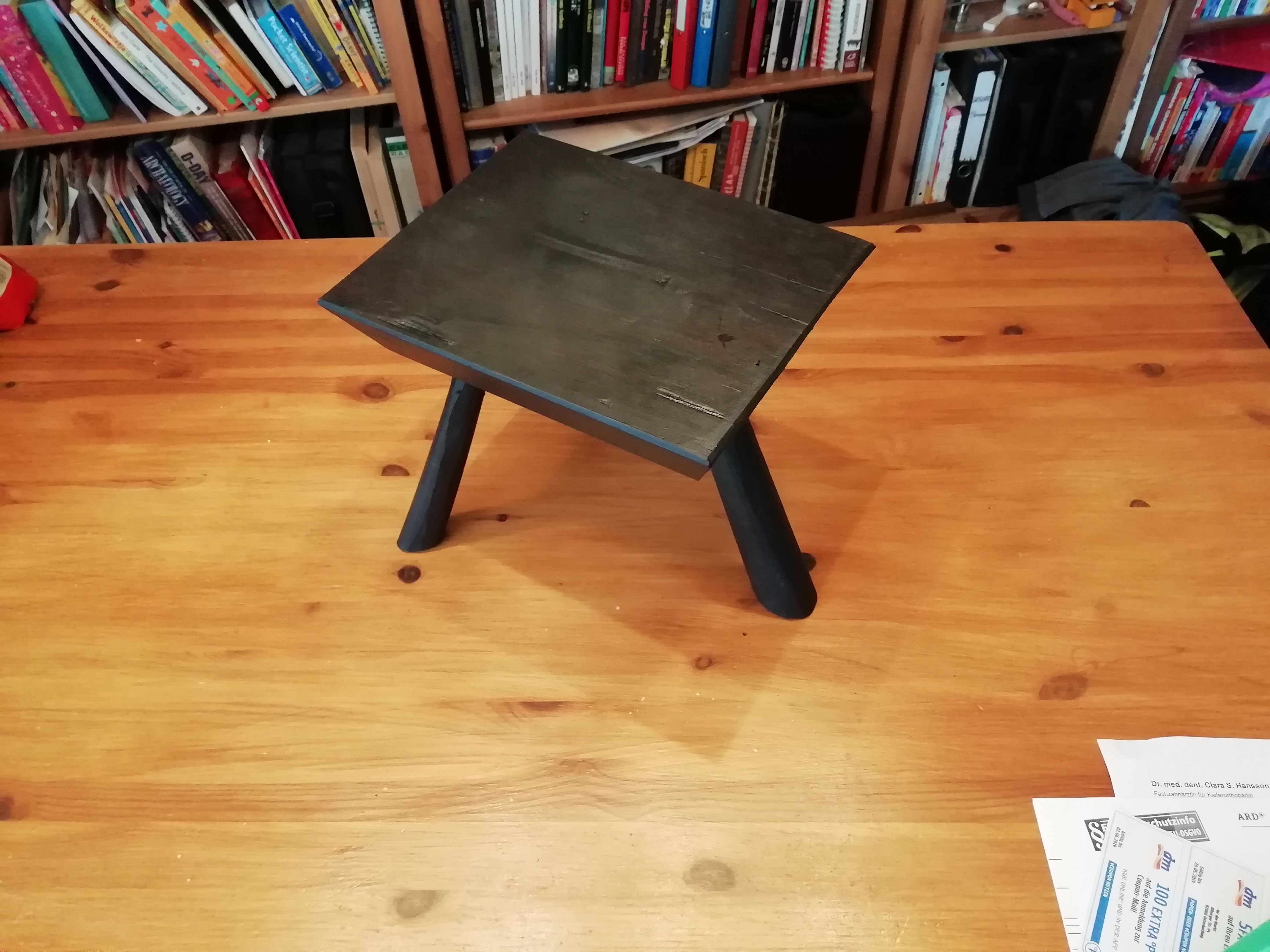 Ein Nachbar hatte ein Stück von einem Maibaum ergattert und fragte, was man daraus machen könnte. Die Idee war schnell gefunden: ein Hocker.