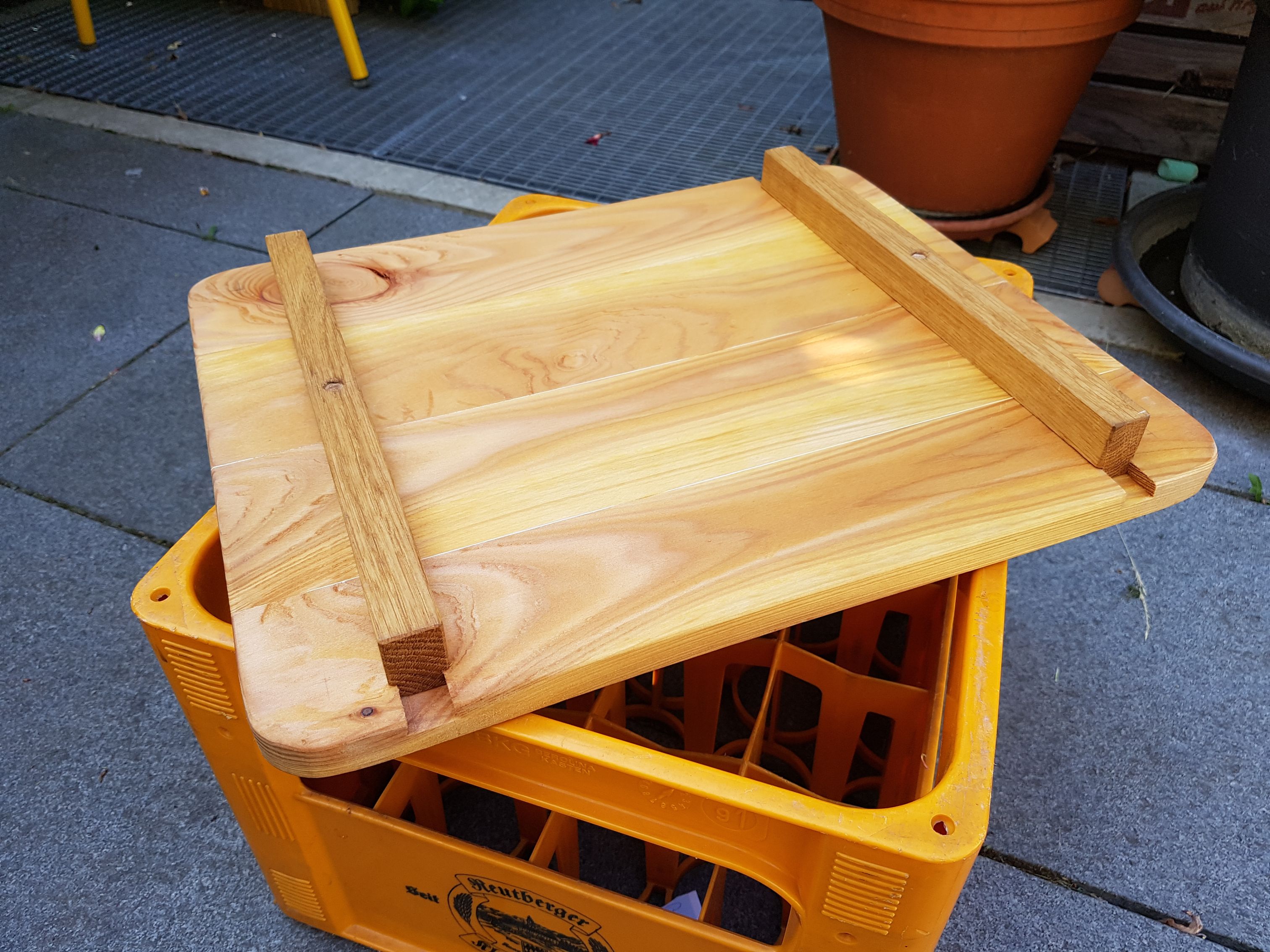 Die beiden 15mm Platten sind einfach mit Flachdübel verbunden. Die Knöpfe sind selbst gedrechselt.