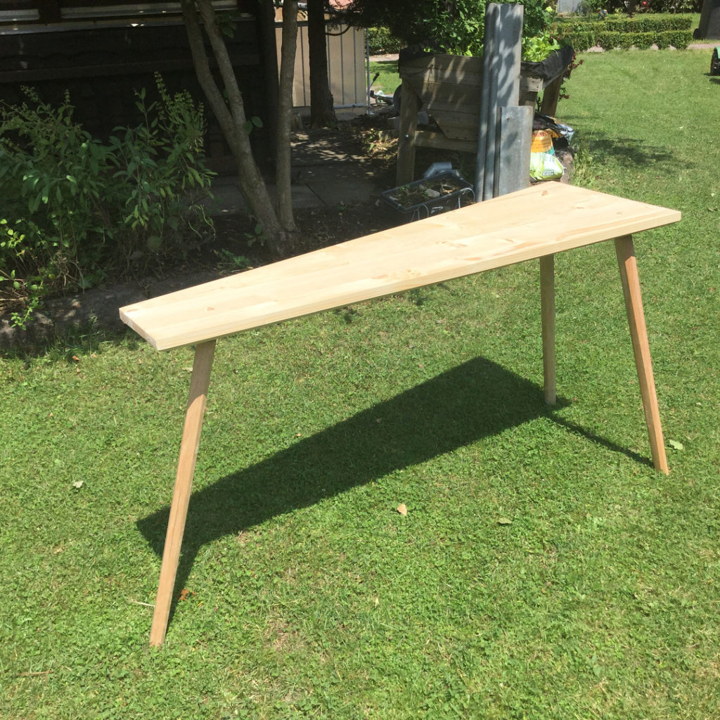 In unserem Wohnzimmer brauchten wir einen Tisch hinter dem Couch. Ich habe einzelne holzleisten gerade gehobelt und verleimt und so eine eine Tischplatte gemacht. Die Tischbeine sind oktagonal und aus Ahorn. Der Tisch ist unbehandelt.
