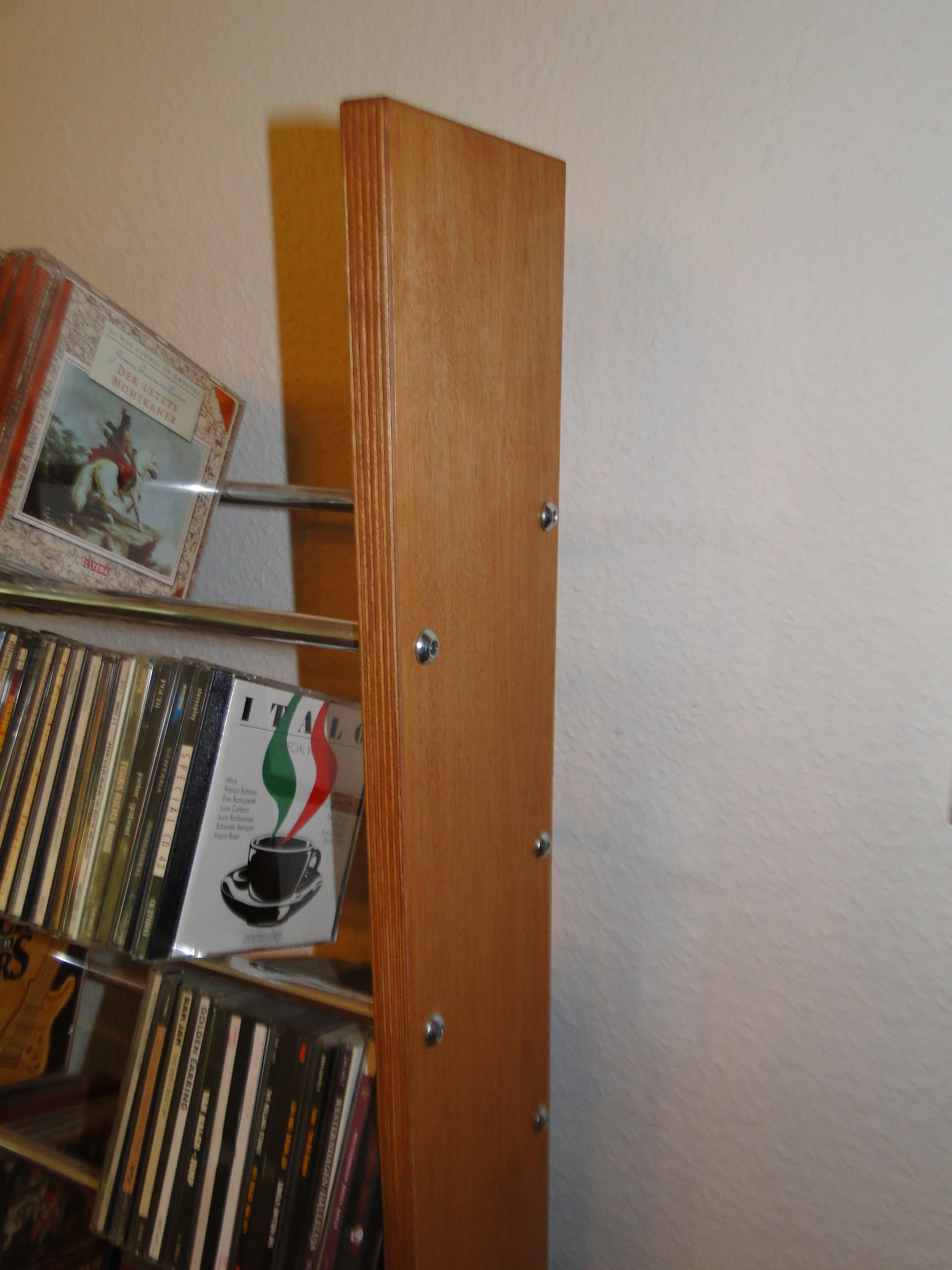 Der Zwischenboden wurde auf fast ganzer Breite eingeschlitzt und dreimal durchgestemmt. Die insgesamt sechs Zapfen wurden von außen mit jeweils zwei Keilen aus Ahorn gesichert.