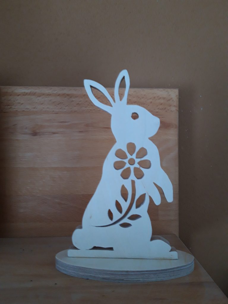 Hier wurde ein Osterhase mit einer Blume aus 11mm Multiplex gebaut.