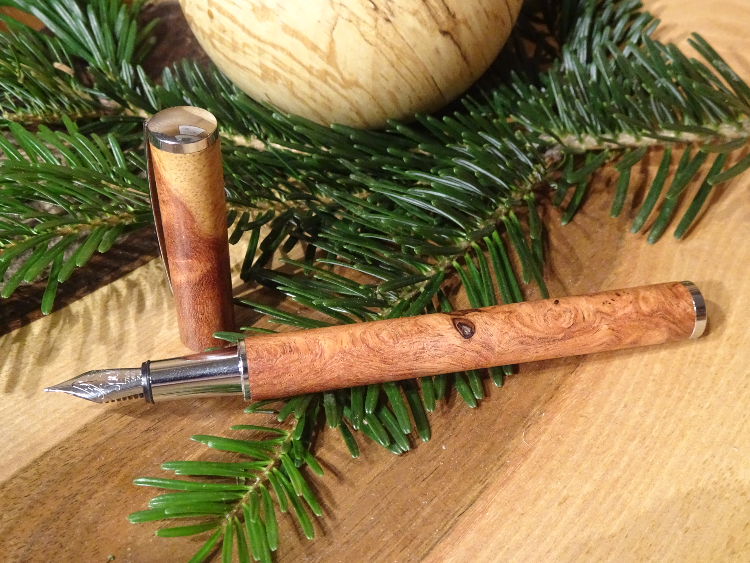 Füllfederhalter aus einem Stück Amboina Maserholz.