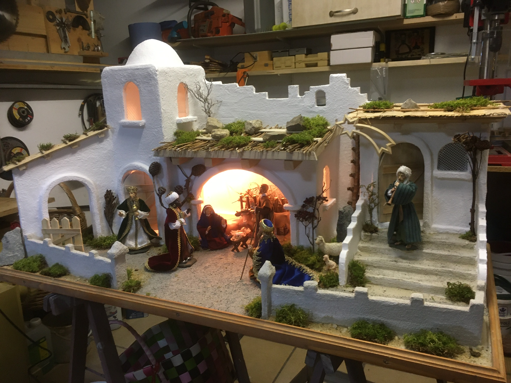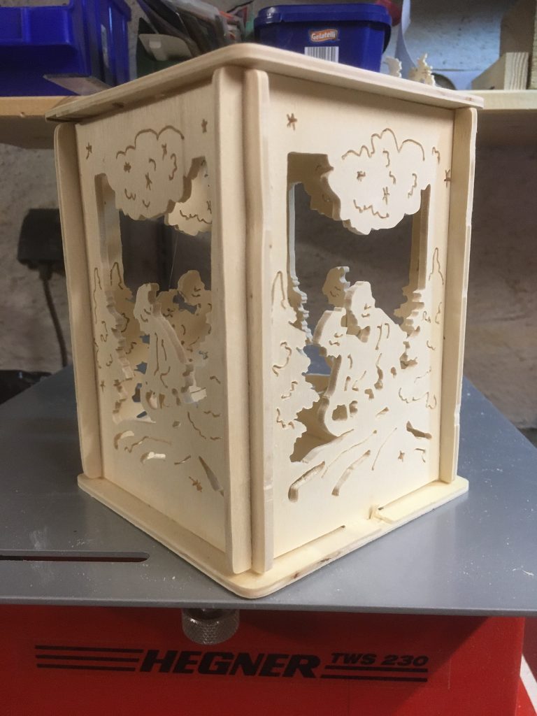Das Gerüst der Krippe wurde aus Holzresten mit der Dekupiersäge von Hegner ausgeschnitten