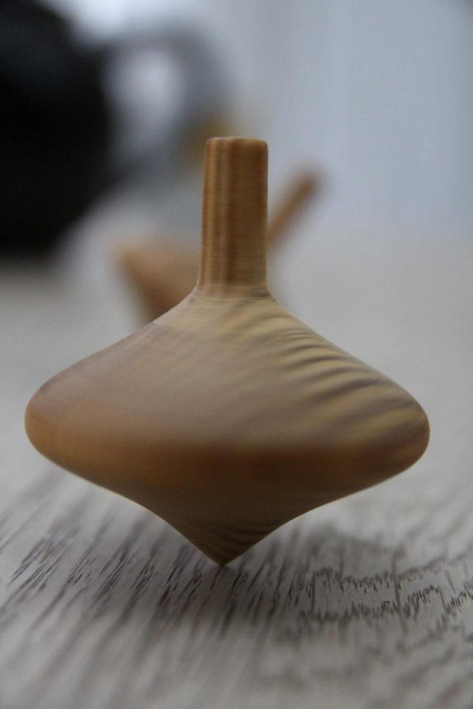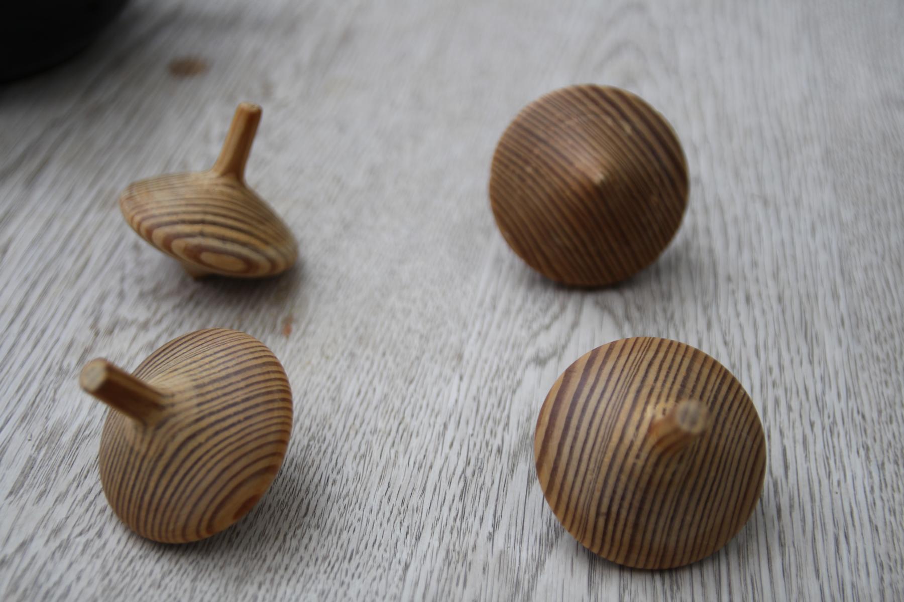 Beim Drechseln von Kreiseln ist es wichtig, dass das Material möglichst gleichmäßig ist, damit die Kreisel auch rund laufen.