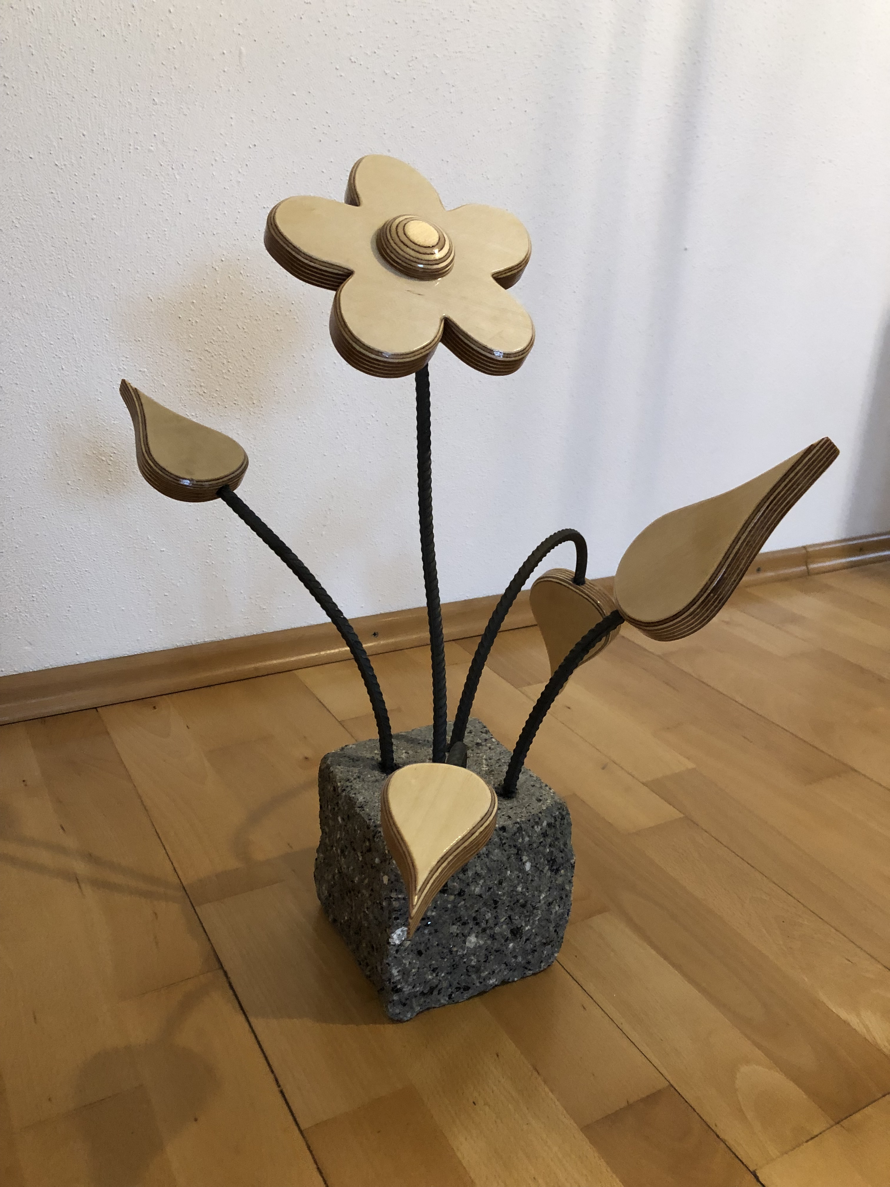 Für den Sockel der Blume wurde ein Stein mit 5 Bohrungen versehen, in die jeweils ein Stück Baustahl eingeklebt wurde.